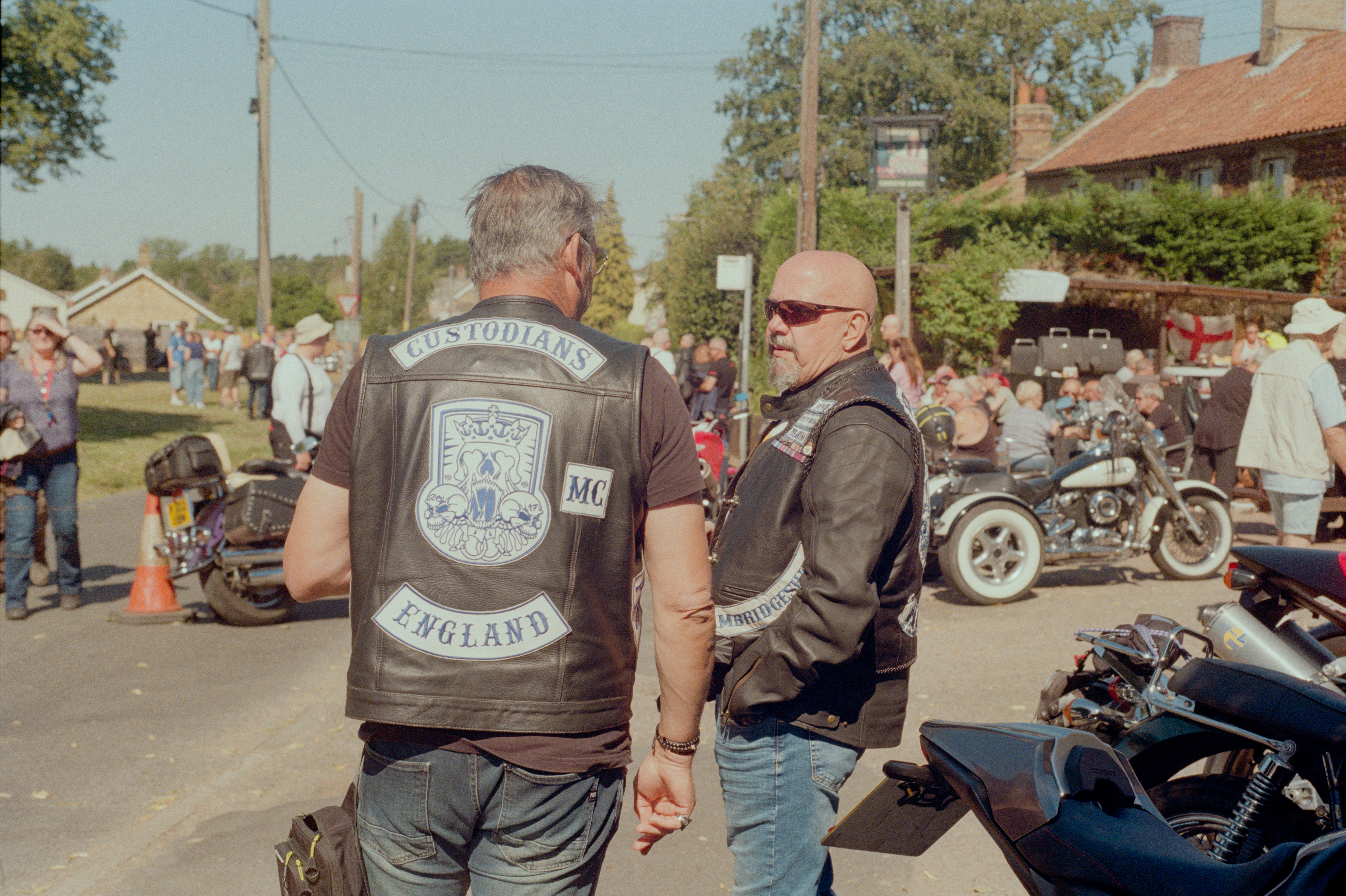 The Custodians motorcycle club at a bike meet up in Wimbotsham, Norfolk, UK