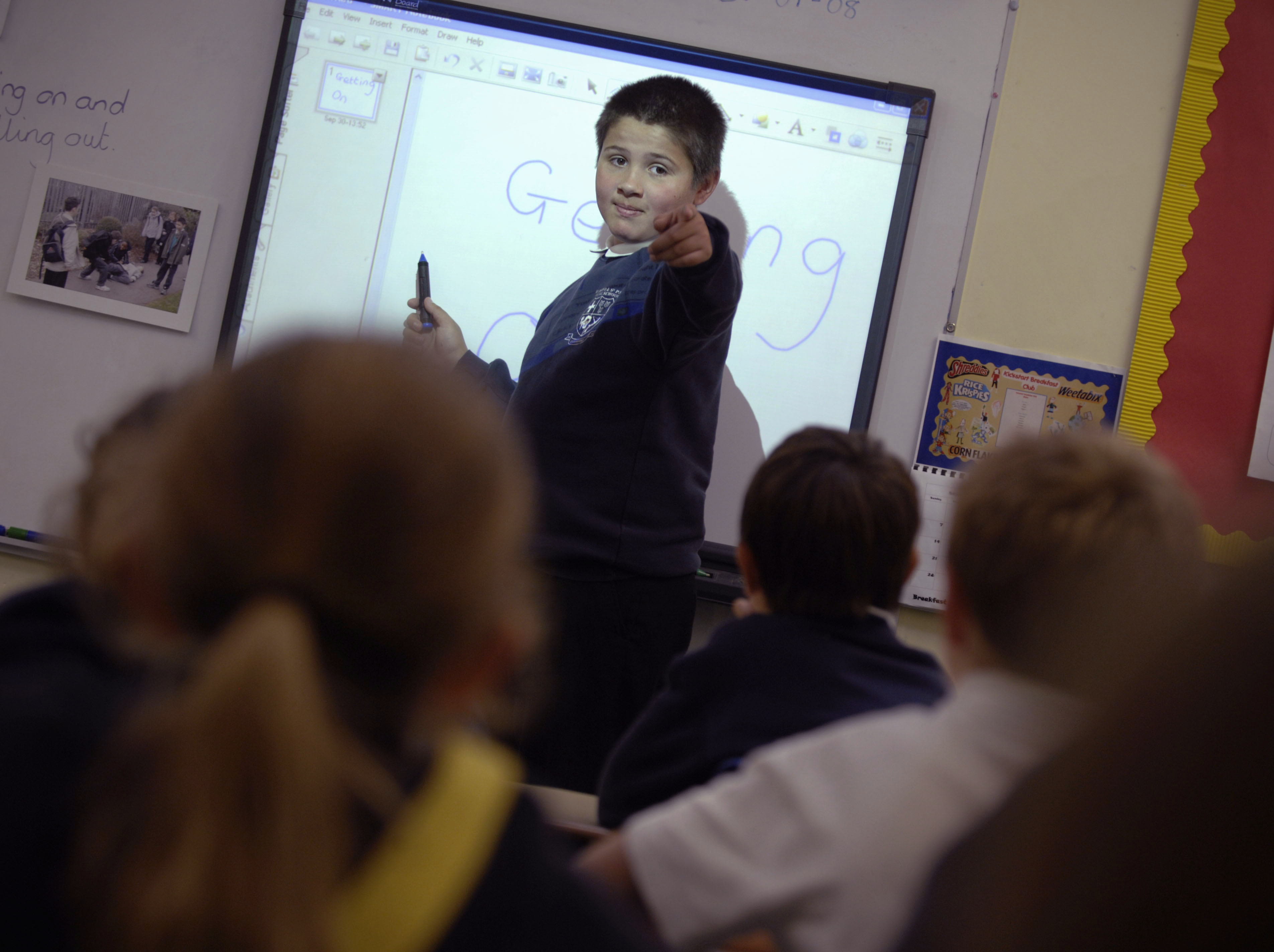 PHOTOGRAPHER - Si Barber 07739 472 922 COMMISSIONED 300908 -CHARLOTTE MAGUIRE Children of St Peter and St Paul primary school, Carbrooke,Norfolk interviewing and testing their classmates as they take over the school for a day and appoint their own teachers. Pic shows Richard teaching after sucessfully applying to become a teacher.
