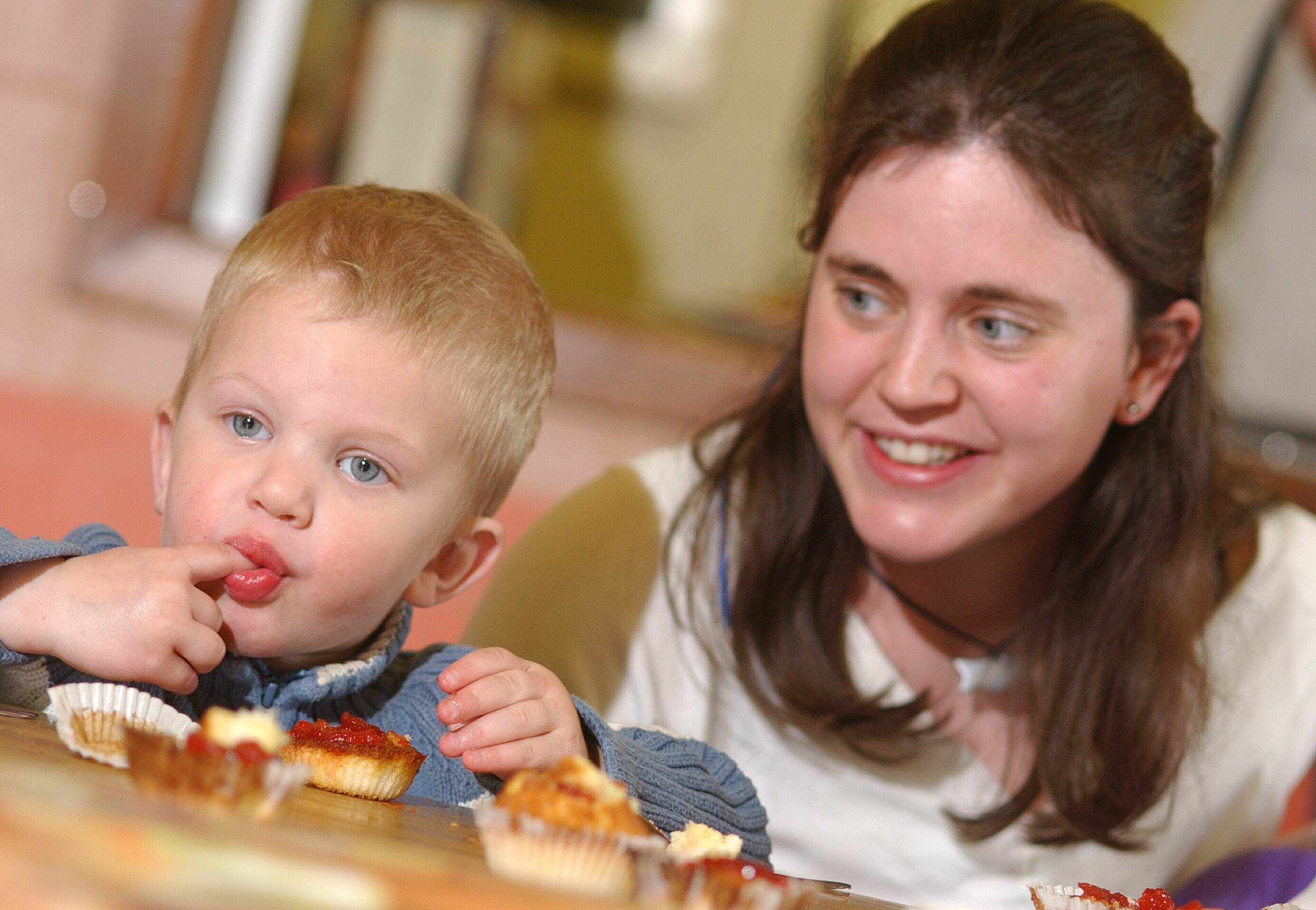 Pic by Si Barber ? 07739 472 922 Mum Jo Sale with son Tim at the Thorpe Hamlet Childrens Centre, Norwich . The nursery is offering classes for families who want to learn to cook together. Each week the group learns to prepare a meal from raw ingredients. After cooking the group enjoys the food together and swap ideas for future meals. This week the group were cooking healthy cakes and learning about how to reduce quantities of sugar and fat in the cooking process.