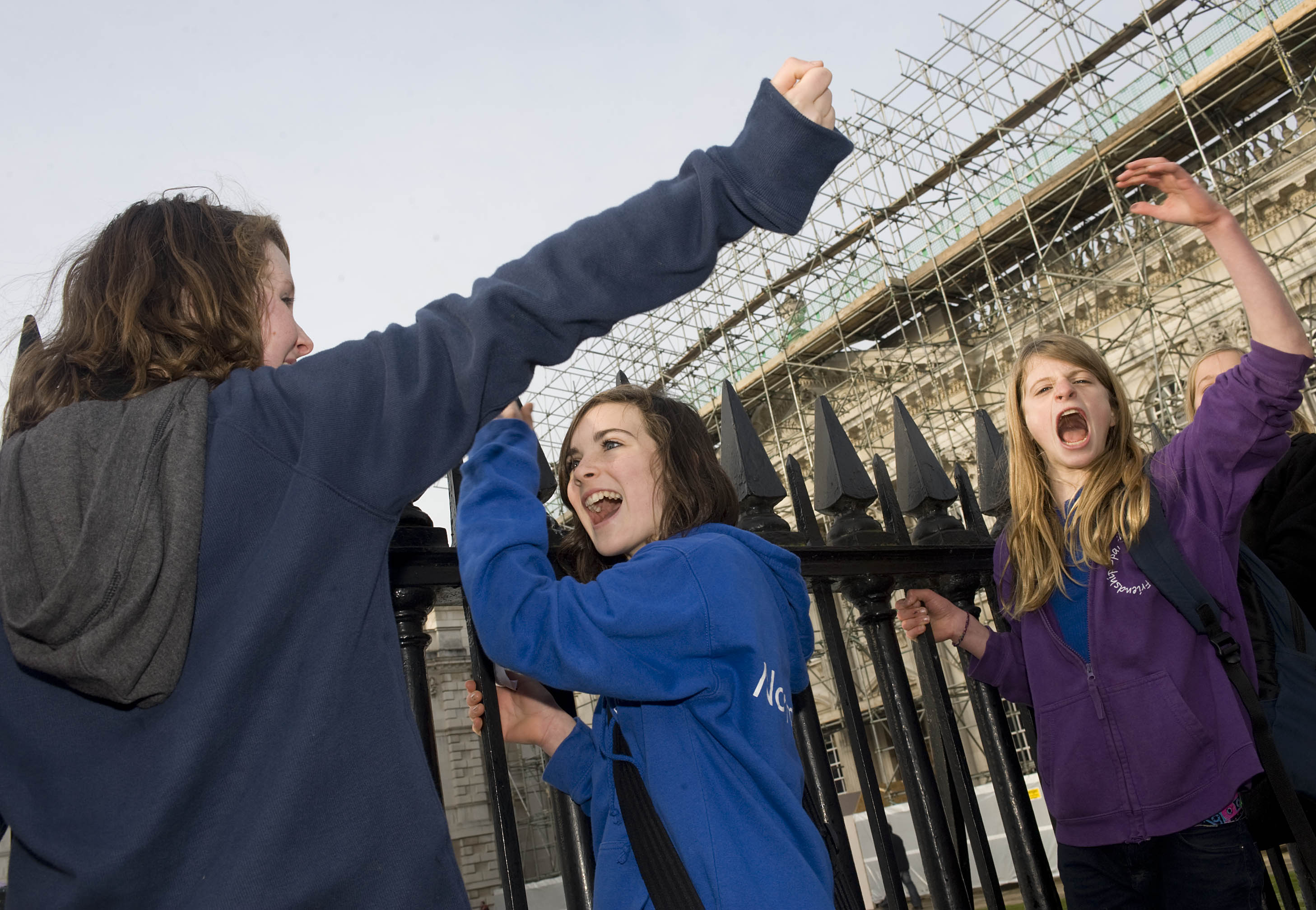 ?Si Barber2010 Tel 07739472922 Schoolchildren outside the Senate house in Cambridge protest the educations cuts, today 30.11.2010