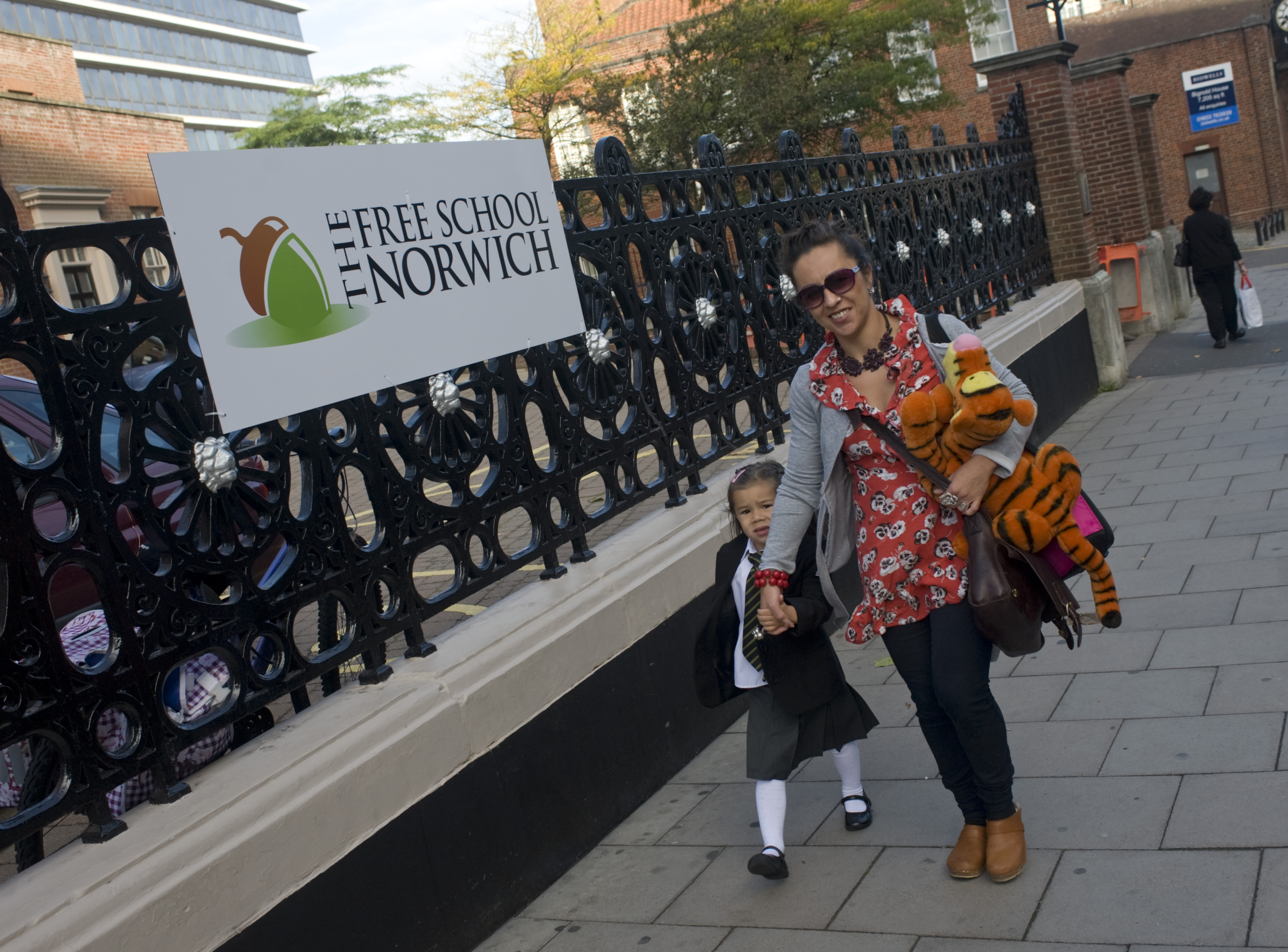 ? Si Barber 07739 472 922 Norwich Free School on it's first day of opening. A Free School in England is a type of Academy, a non-profit-making, independent, State-funded school which is free to attend but which is not controlled by a Local Authority. They are subject to the same School Admissions Code as all other State-funded schools.