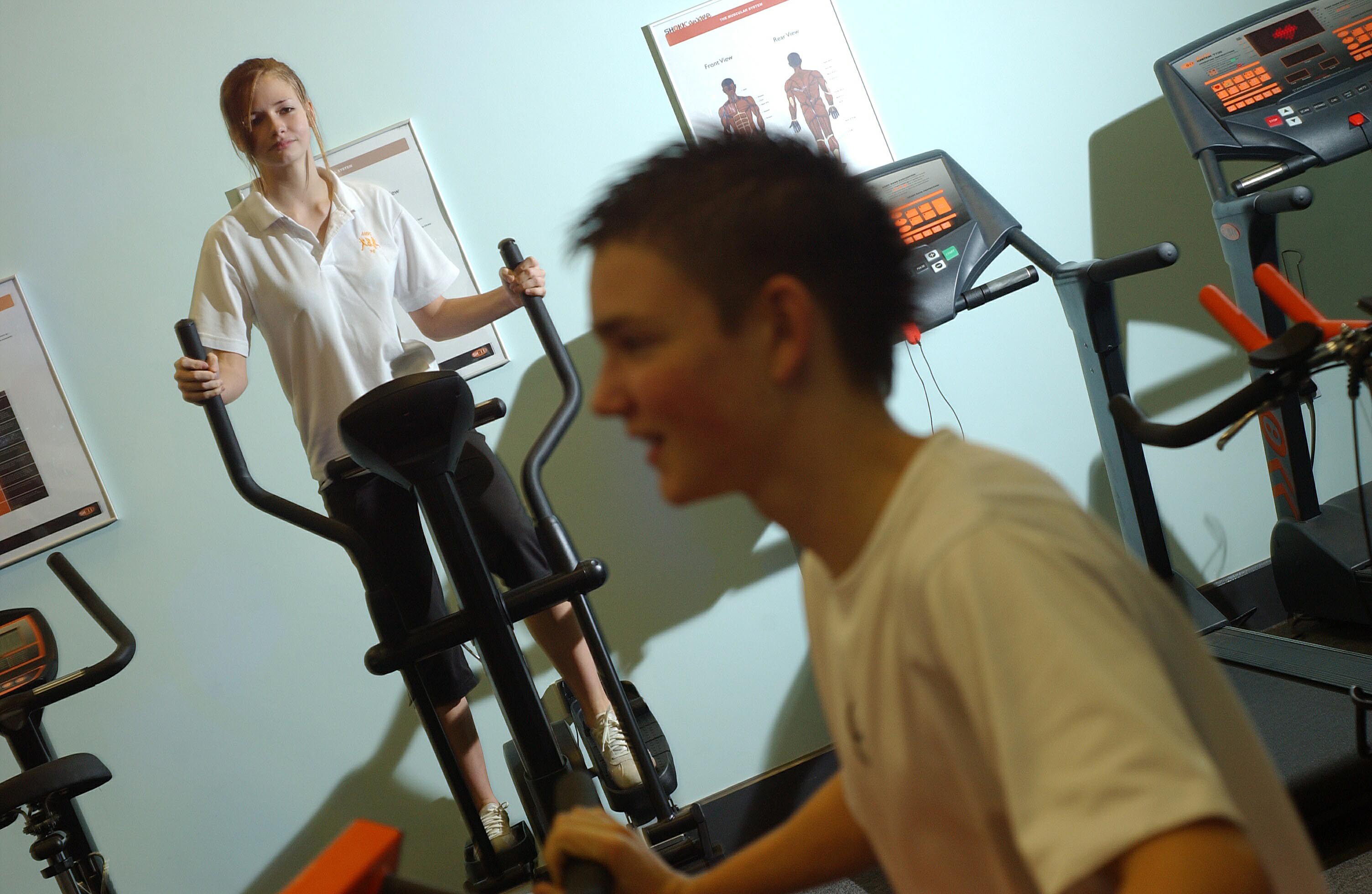 Pic by Si Barber - 07739 472 922 Student Lucy & Jack trying out the new gym at Arthur Mellows School, Glinton, Peterborough 18.11.05