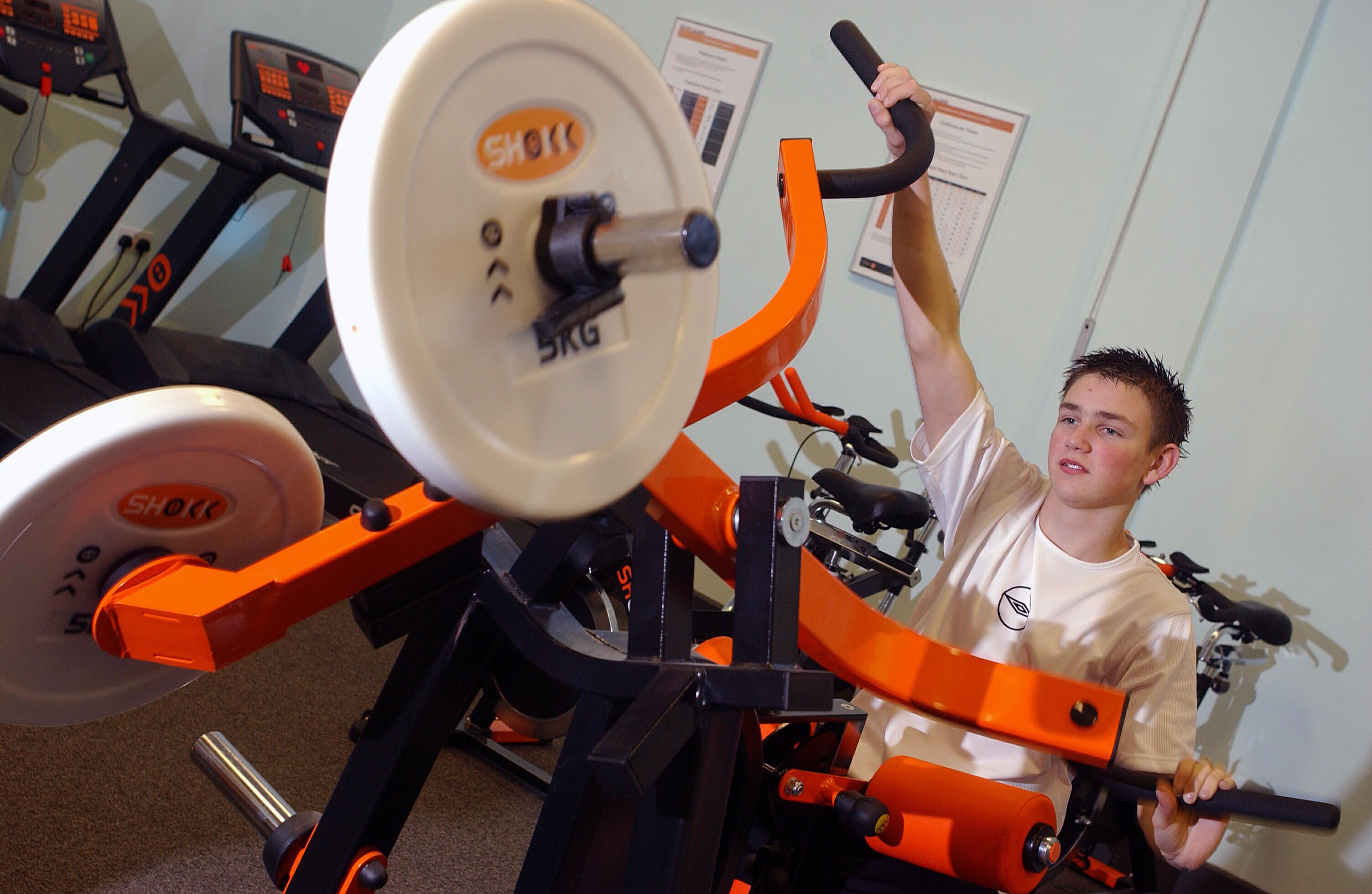 Pic by Si Barber - 07739 472 922 Sixth Form student Jack trying out the new gym at Arthur Mellows School, Glinton, Peterborough 18.11.05