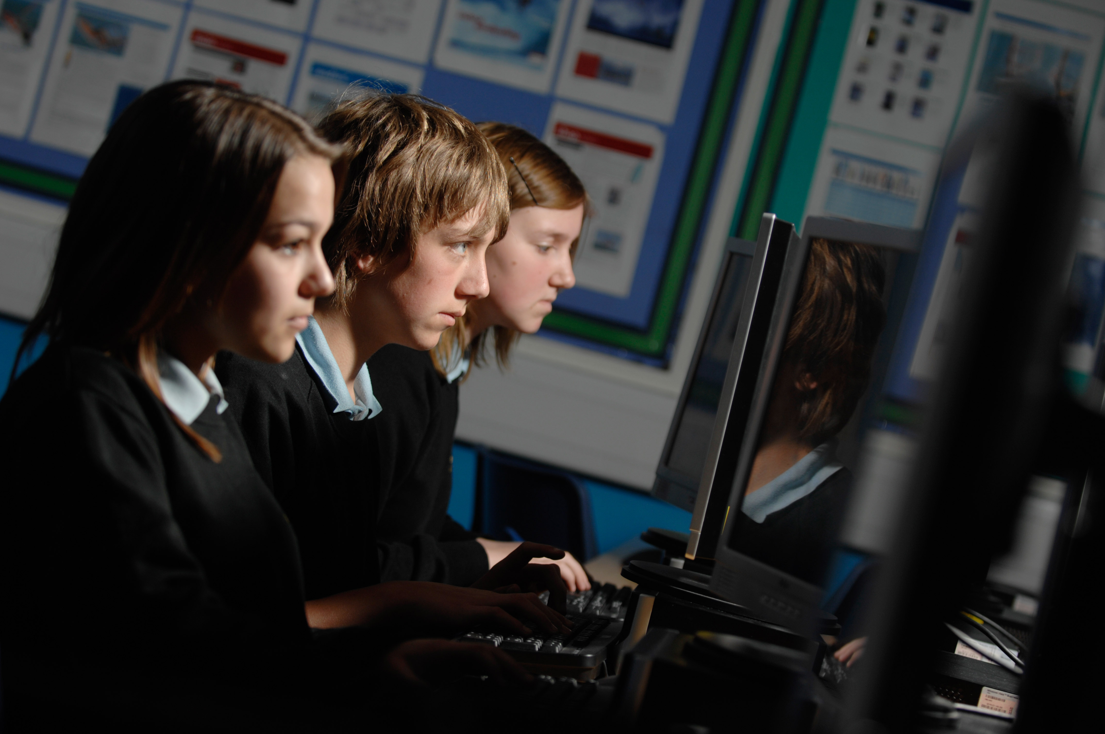 ?Si Barber/07739 472 922 School children in a UK comprehensive using computers.