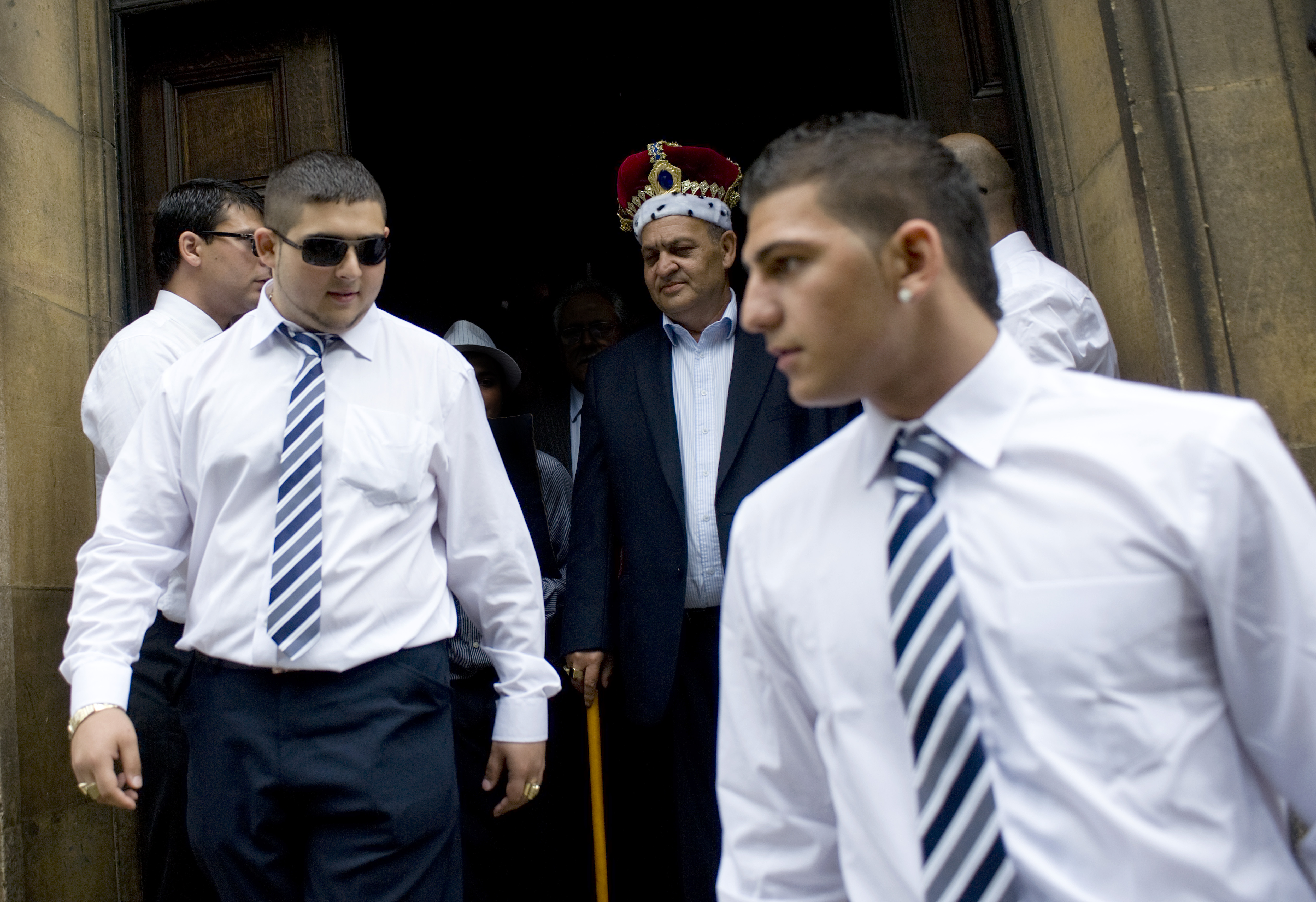 ?Si Barber2010 Tel 07739472922.Voting in the UK's first ever Roma Gypsy election gets under way in Peterborough, Cambridgeshire on Saturday 25th June 2011..Nineteen candidates from across Britain have been ?campaigning ?for the title of 'King of the Gypsies, which in past years was decided with a fist-fight but today the winner will be nominated by the ballot box. ?The victor will be awarded a crown and a 'gold' stick which will empower them to adjudicate on disputes within the community. In this picture?amid security and well-wishers ladislav Stojka leaves victorius as King of the Gypsies..