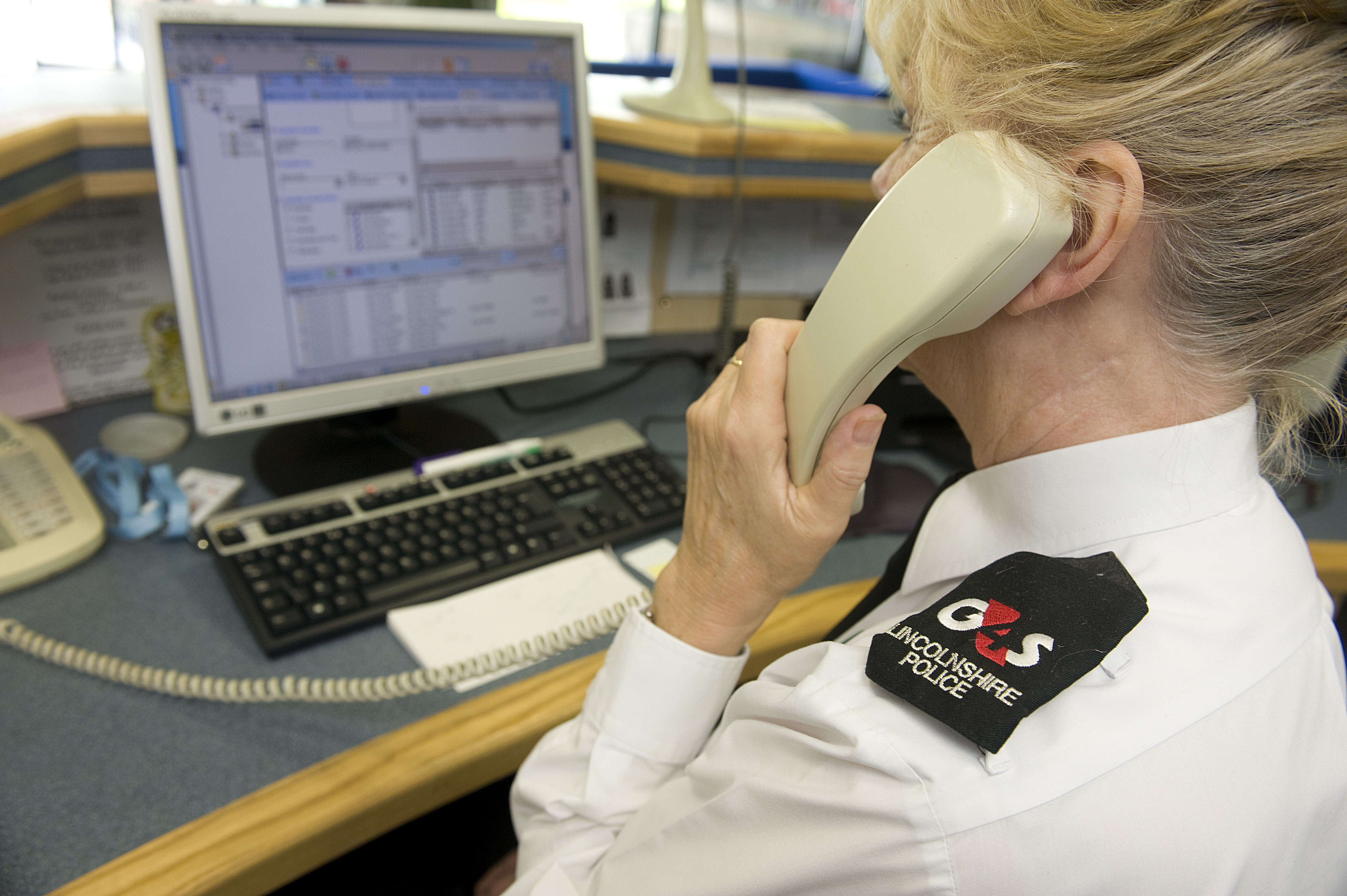 A police worker in Lincolnshire wearing an epaulette with the G4S logo. The public/private partnership, the first in the UK is thought to be a blueprint for other forces.