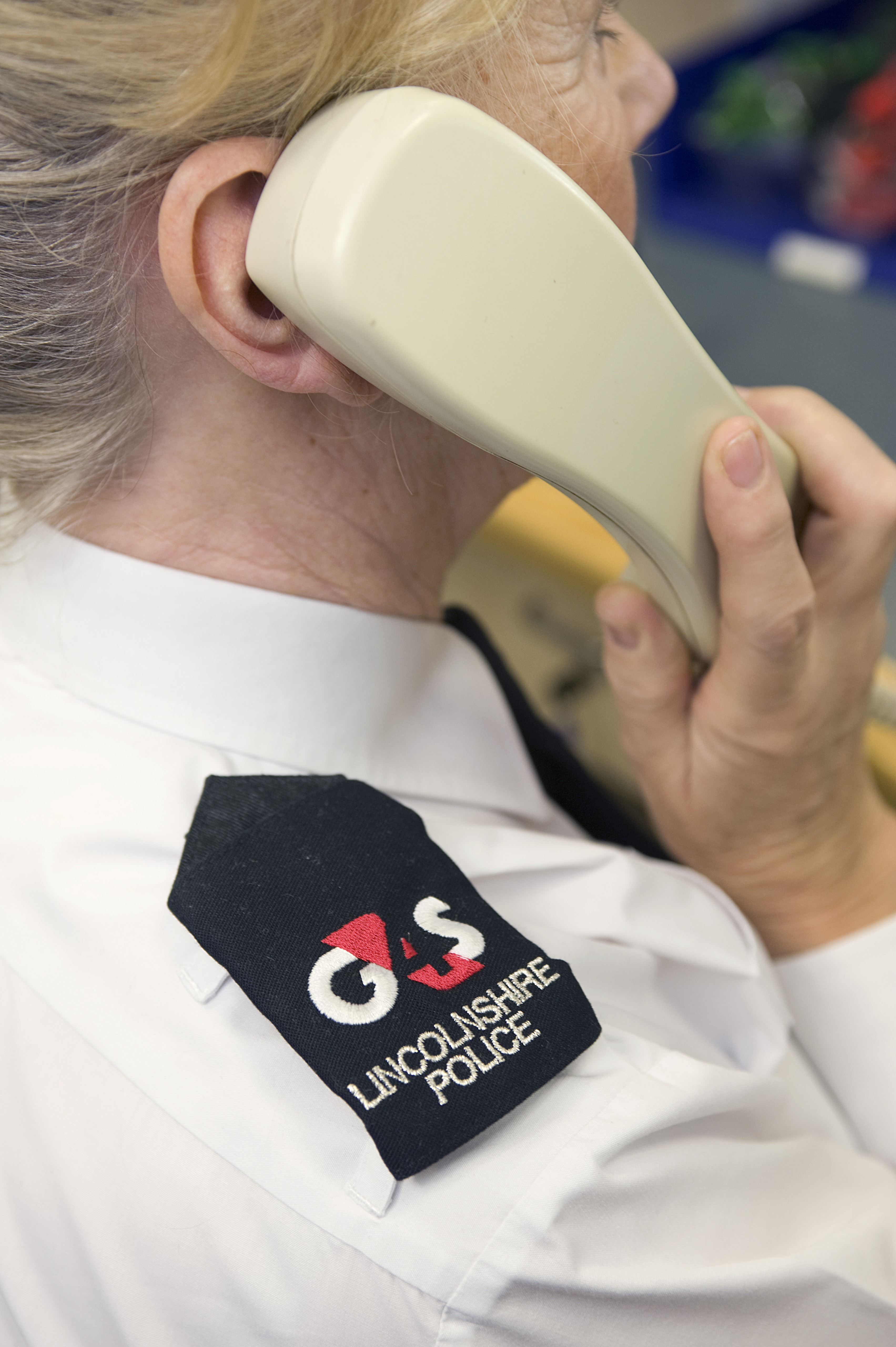 A police worker in Lincolnshire wearing an epaulette with the G4S logo. The public/private partnership, the first in the UK is thought to be a blueprint for other forces.