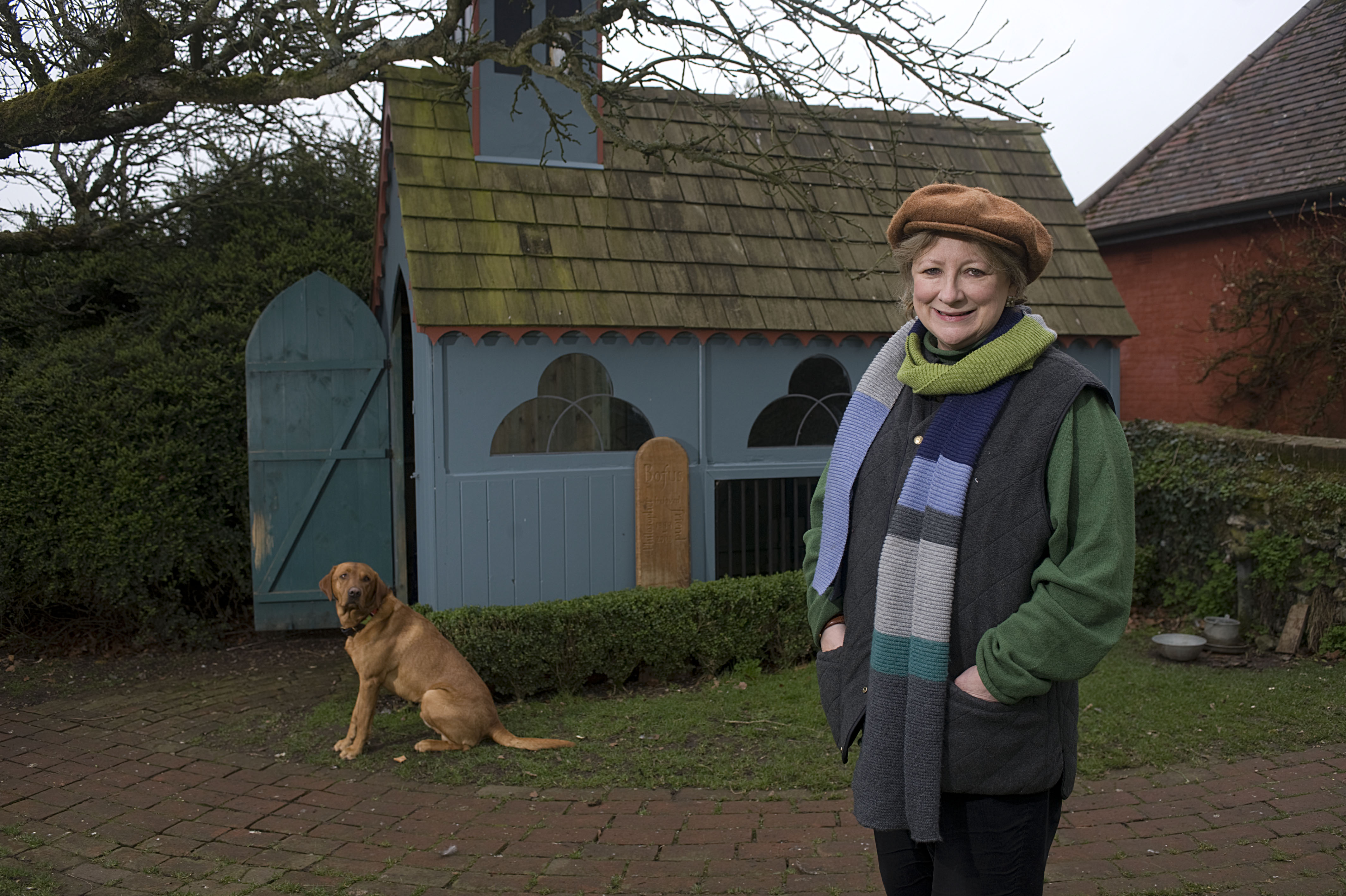 ©Si Barber. Moral rights asserted.   Lady Carla Carlisle at home with her labrador Otis in Suffolk.
