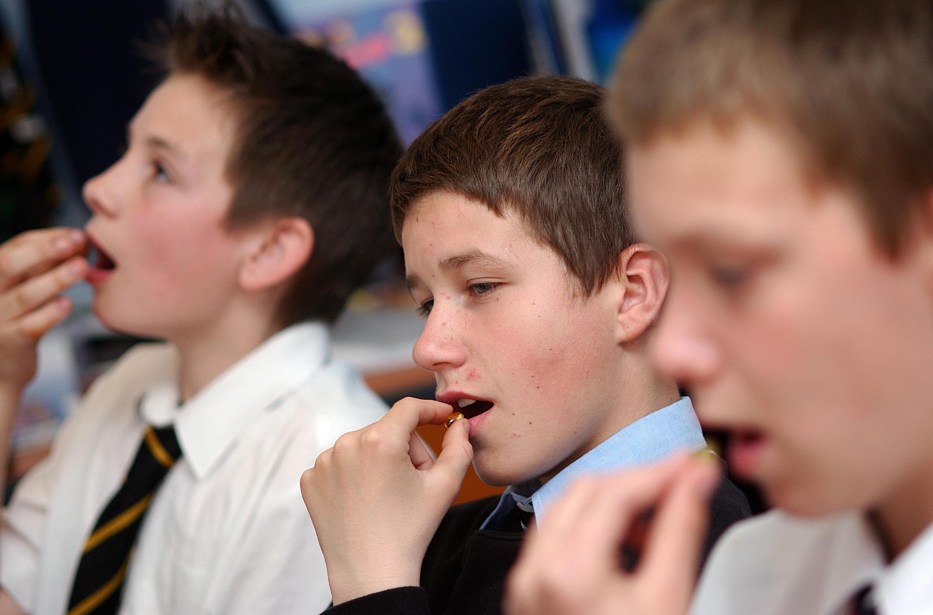 Mandatory Credit: ? Si Barber/07739 472 922 School pupils who have added fish oil pills to their diet to try and establish whether it can improve their concentration and behaviour.