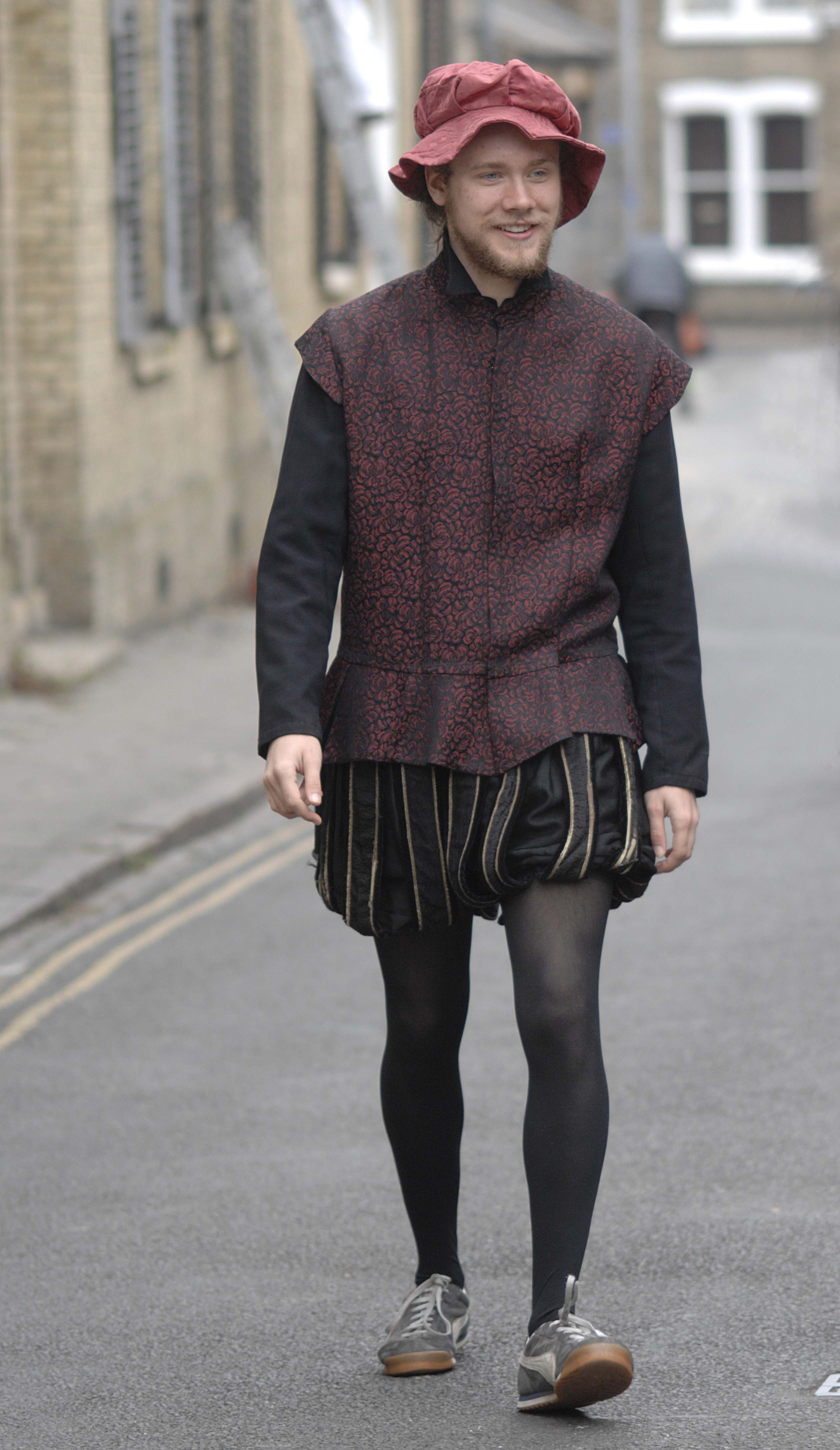 Pic by Si Barber - 07739 472 922 Cambridge student and actor Thomas Yarrow who is due to play Shylock in Shakespeare's Merchant of Venice visiting the Cambridge Synagogue to study Jewish culture with Nathan Jaffay. Pic shows modern and medieval Jewish clothing -nb In Shakespeare's time Jews were required by law to wear a red cap. Ordered by Jo Ruck 040507