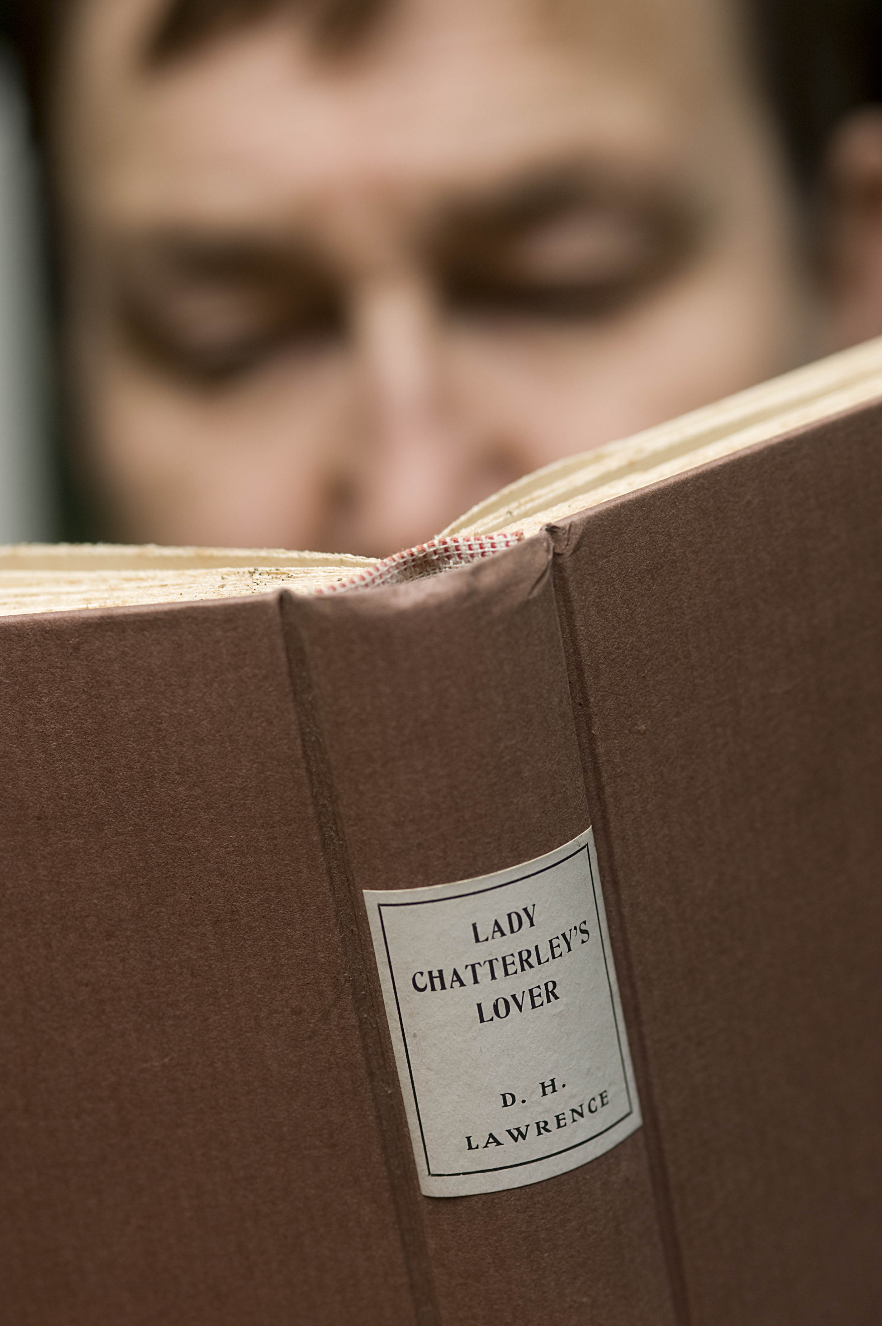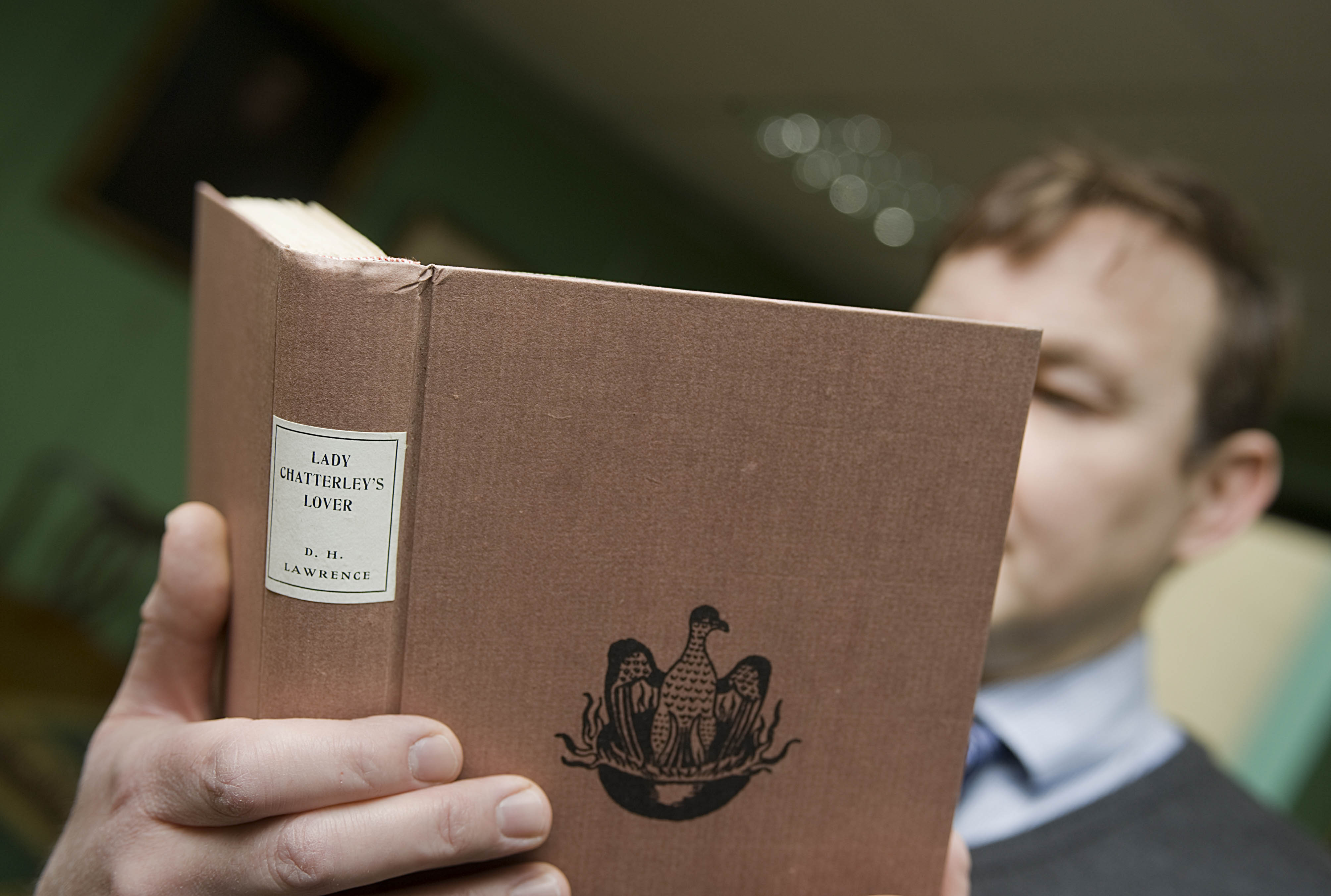 Auctioneer Charles Ashton of Cheffins, Cambridge examining a rare first edition of D H Lawrence's Lady Chatterley's lover which comes up for auction on Wednesday 23rd February 2011. Lawrence paid for the first printing of his infamous novel in 1928 undertaken by the Italian publisher Orioli when he was unable to find a British publisher for the work. There were only 1000 printed with each one being signed by Lawrence. This edition os expected to sell for ?2500. Lady Chatterley's lover was eventually sold publically in the UK in 1960 after a celebrated courtcase.