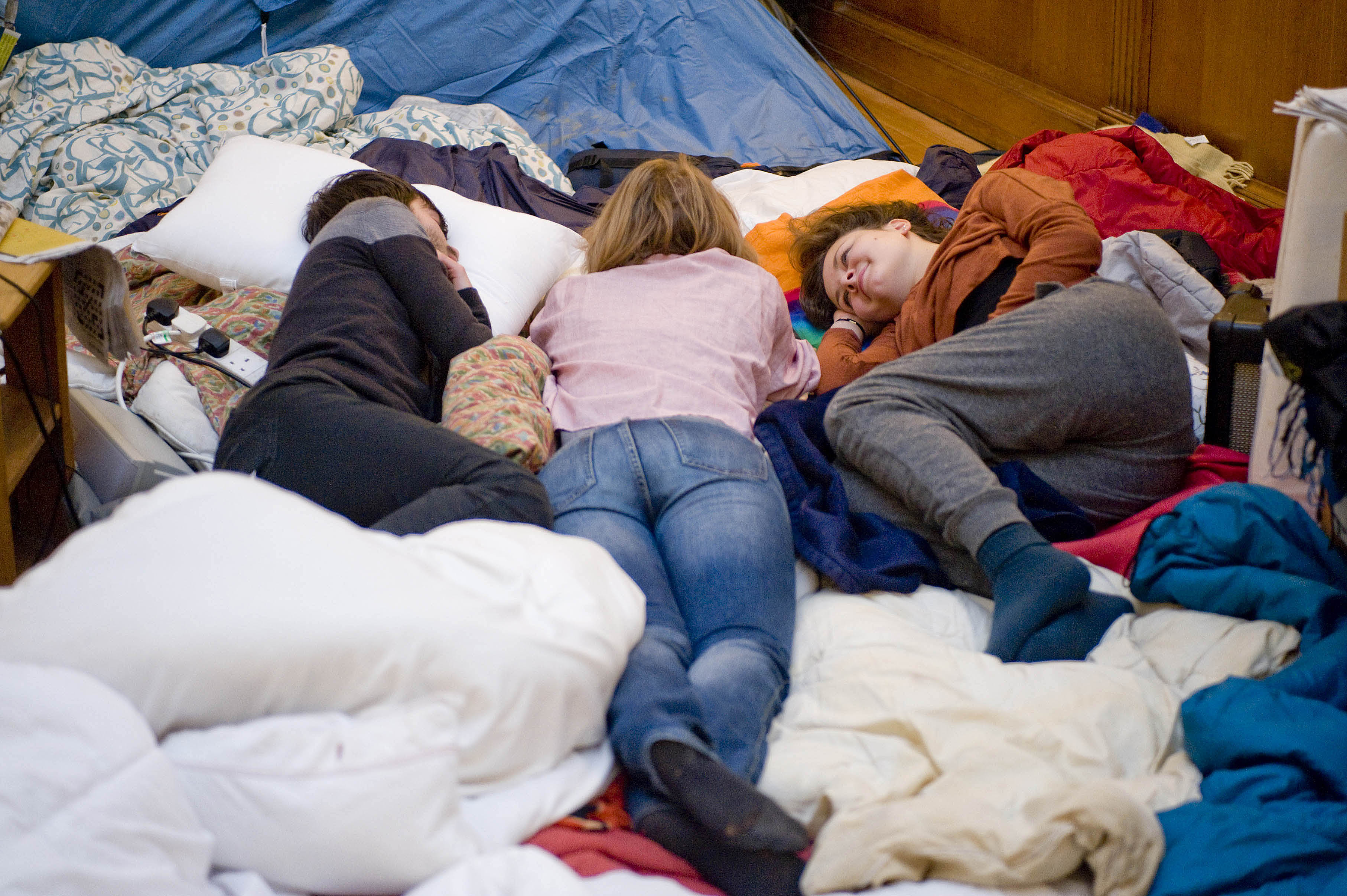 ©Si Barber. Moral rights Asserted. Students occupying the Senate House in Cambridge on 3rd December 2010 as their protest enters a second week.