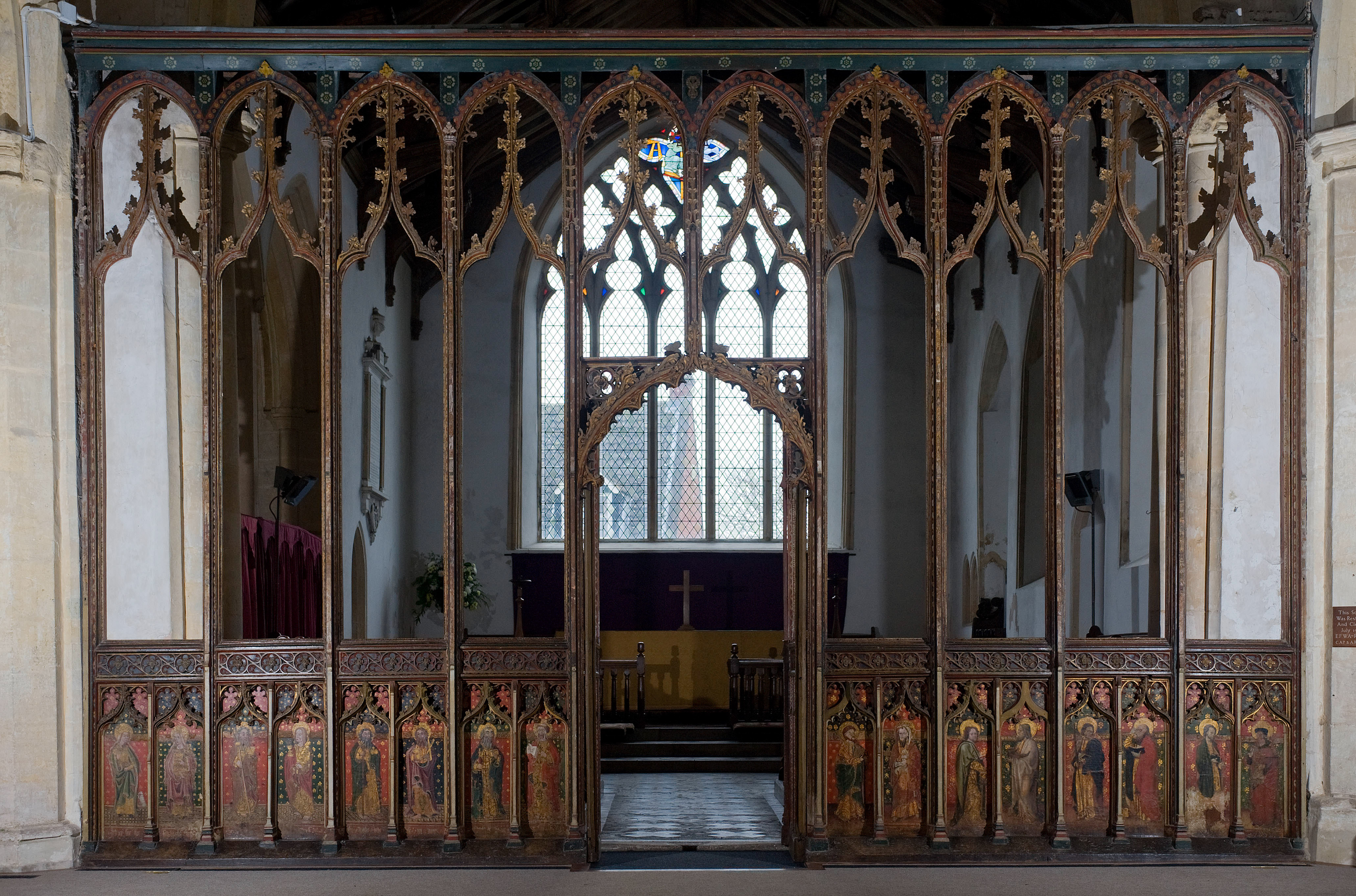 The Rood Screen and detail at St Agnes Church, cawston, Norfolk