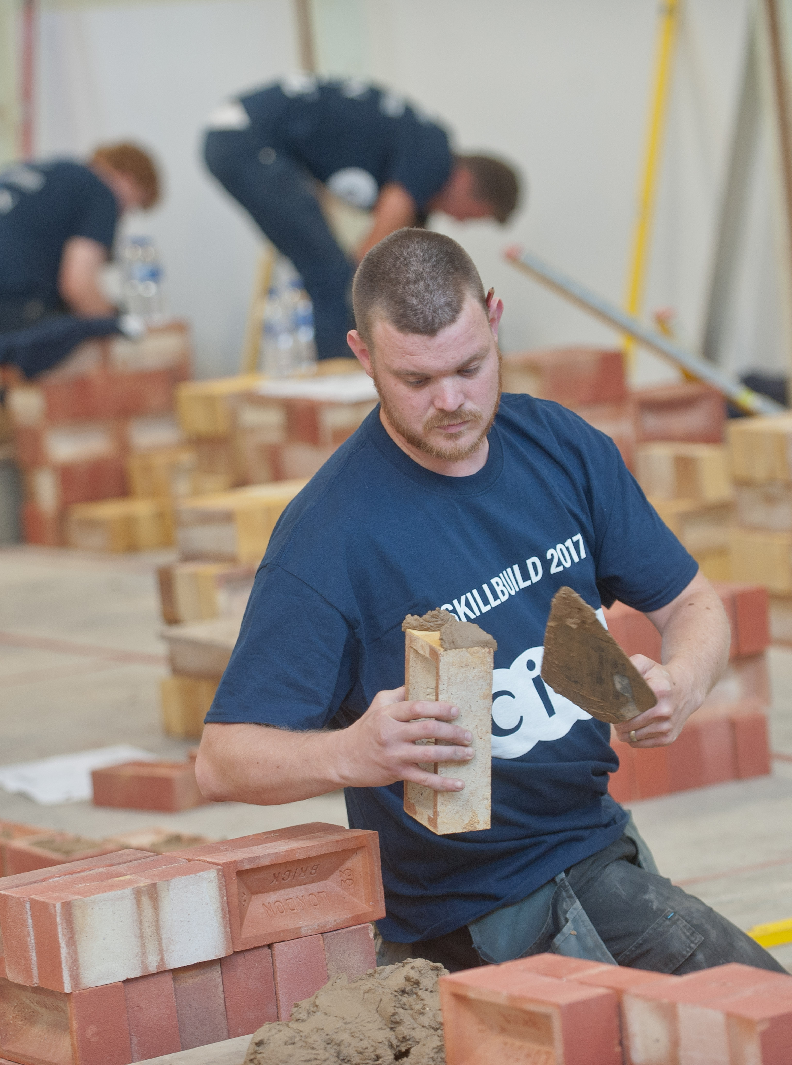 Copyright Si Barber/07739 472 922. Student bricklaying competition at the College of West Anglia, King's Lynn, 29th June 2017. Use permitted only by Forterra and their authorised agents.
