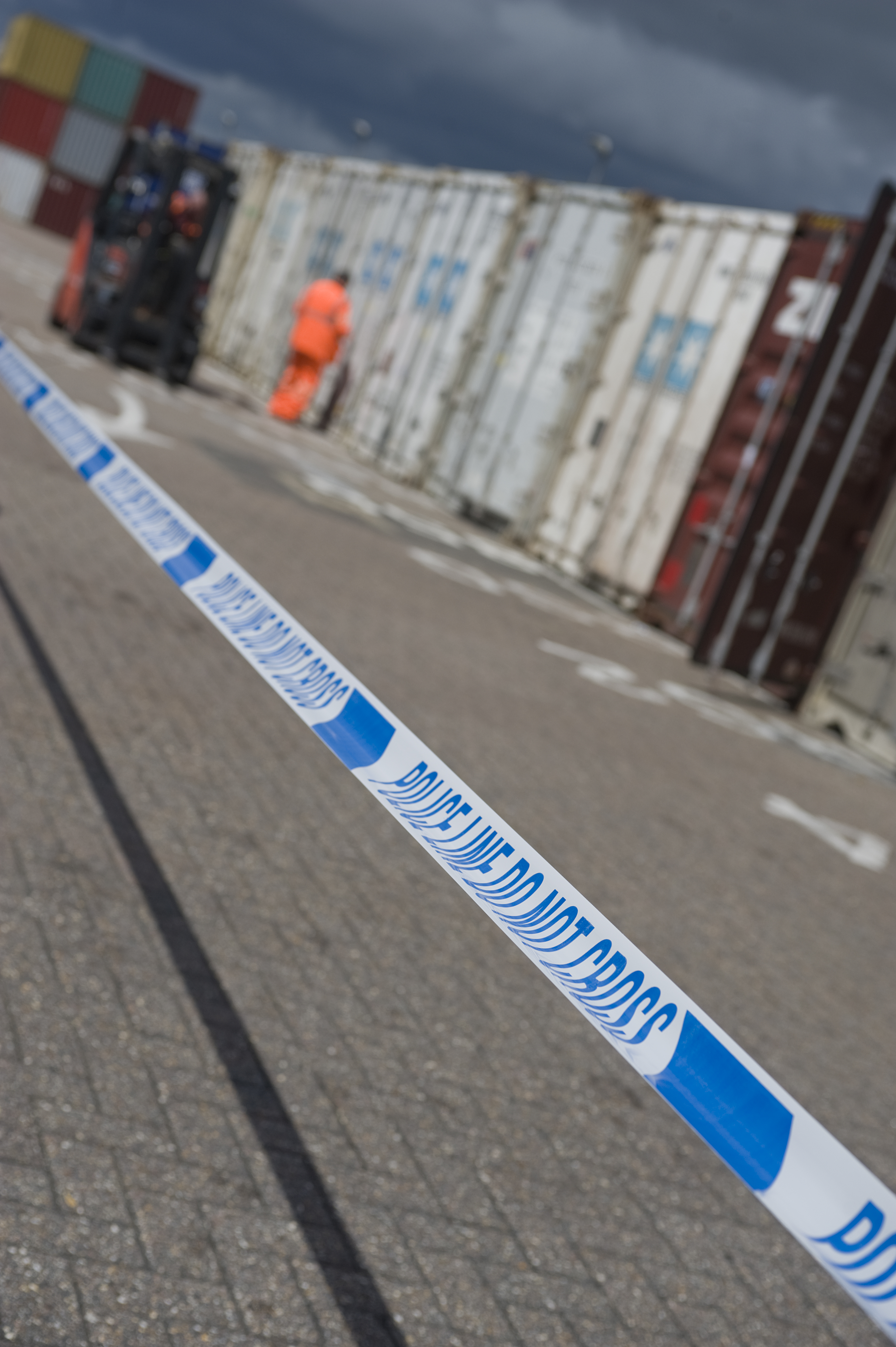 Police officers searching containers at Felixstowe port in Suffolk for stolen goods and contraband.