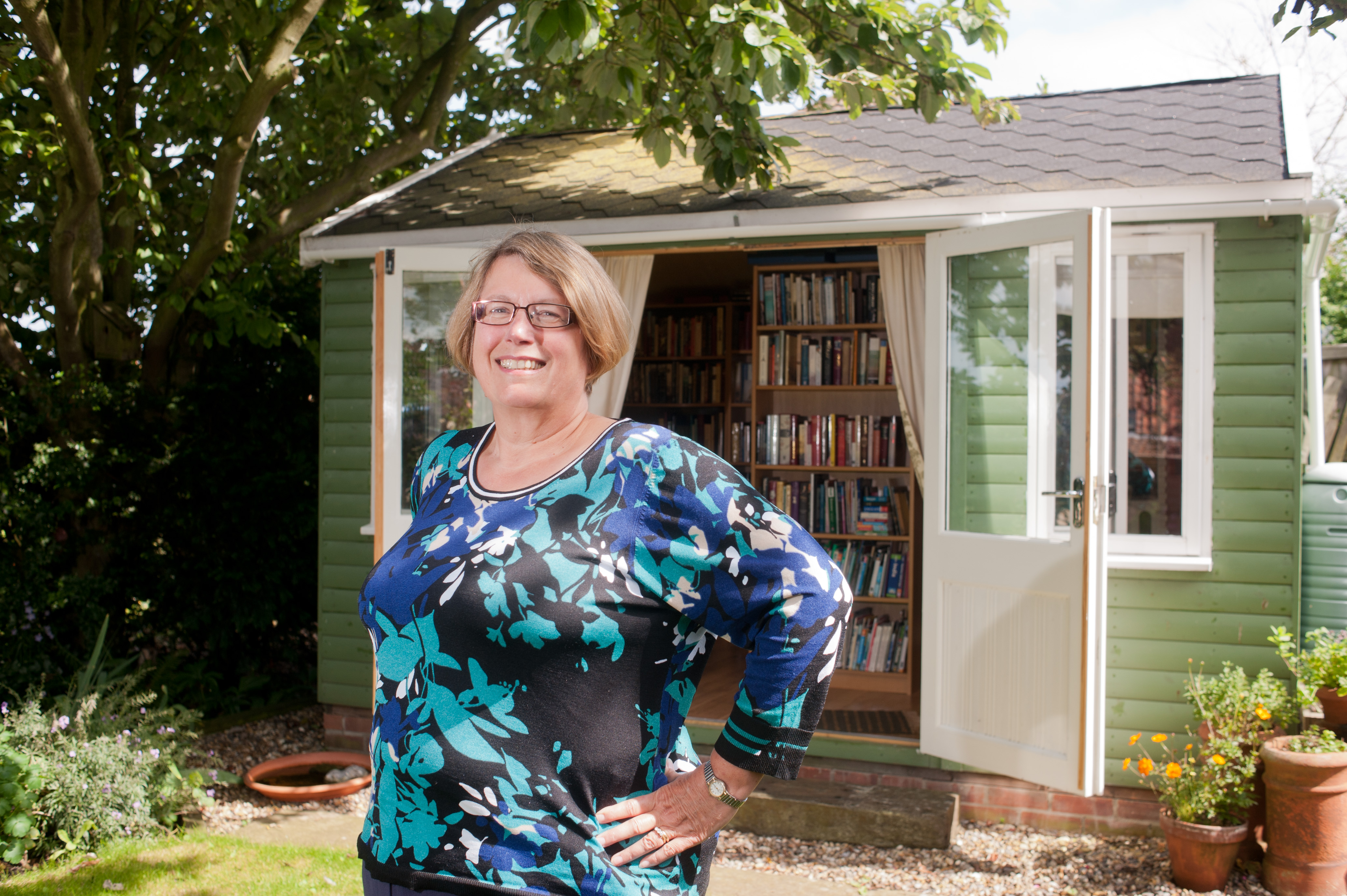 Author Louise Allen & her writing shed.