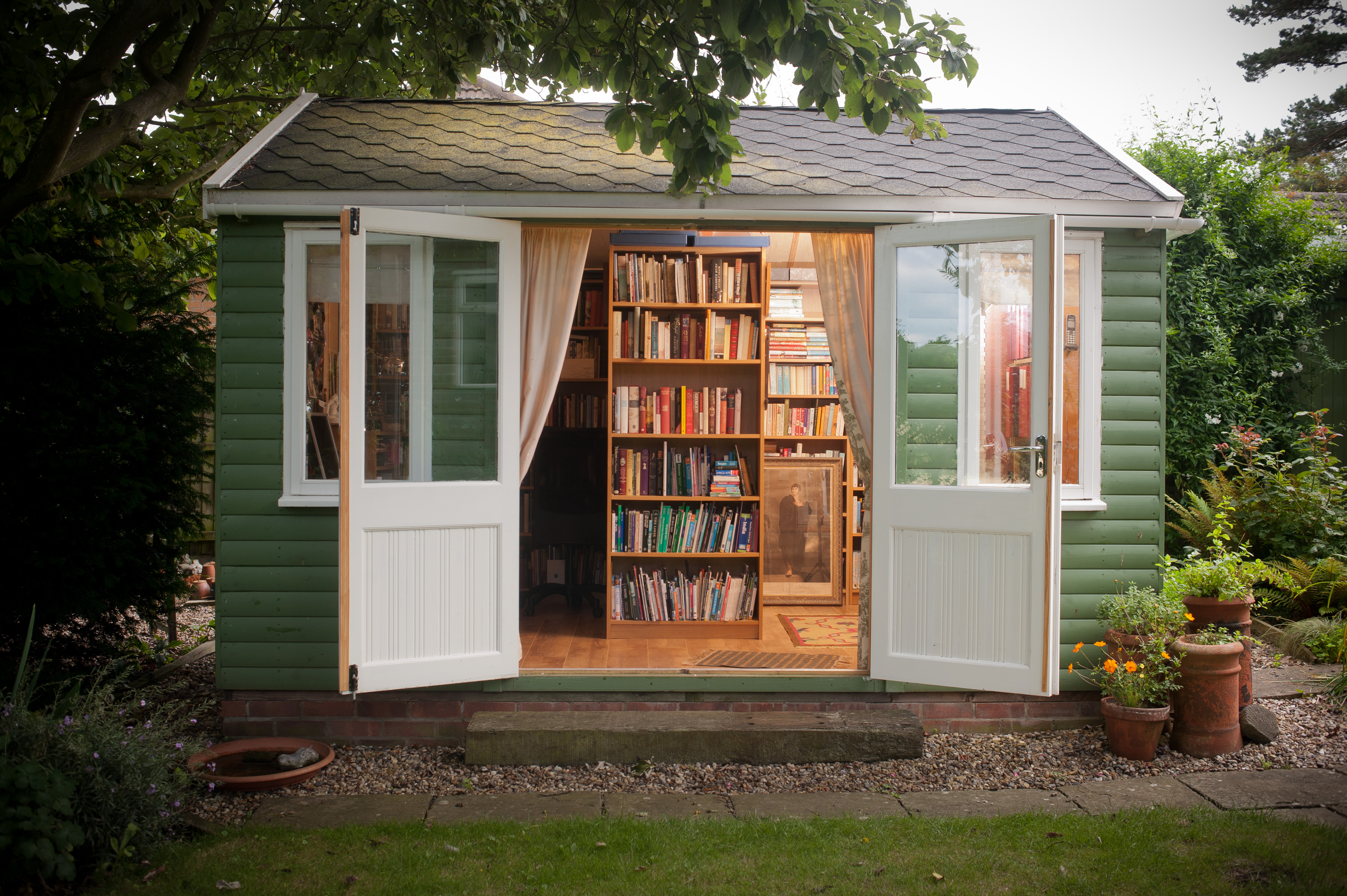 Author Louise Allen & her writing shed.