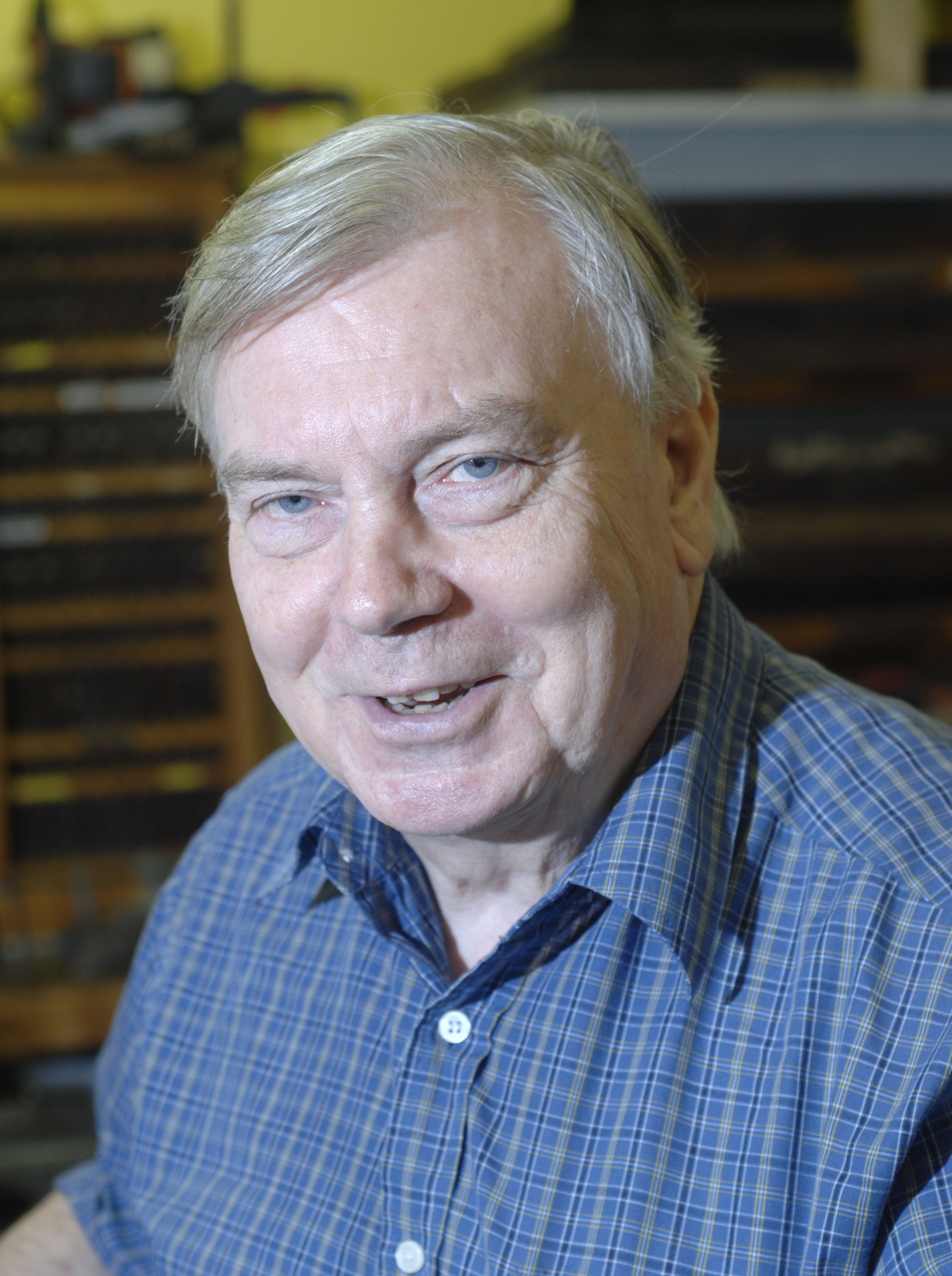 Pic by Si Barber - 07739 472 922 Traditional printer Brian Hubbard with 'hot metal' lead type, North Walsham, Norfolk.Ordered by Rebecca 171006