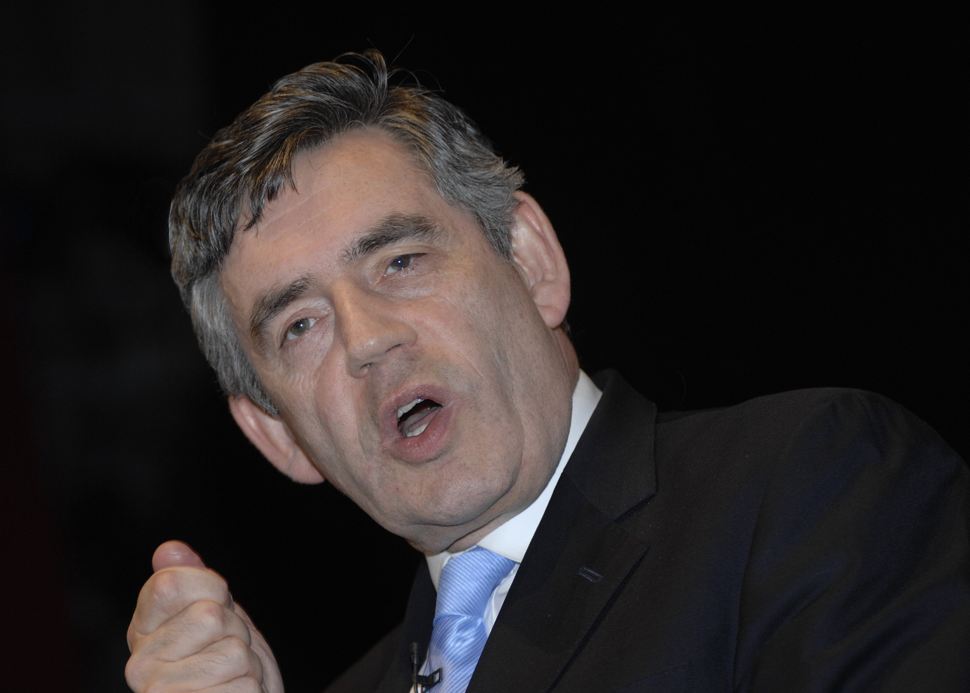Former Labour Prime MInister Gordon Brown speaking in Leicester