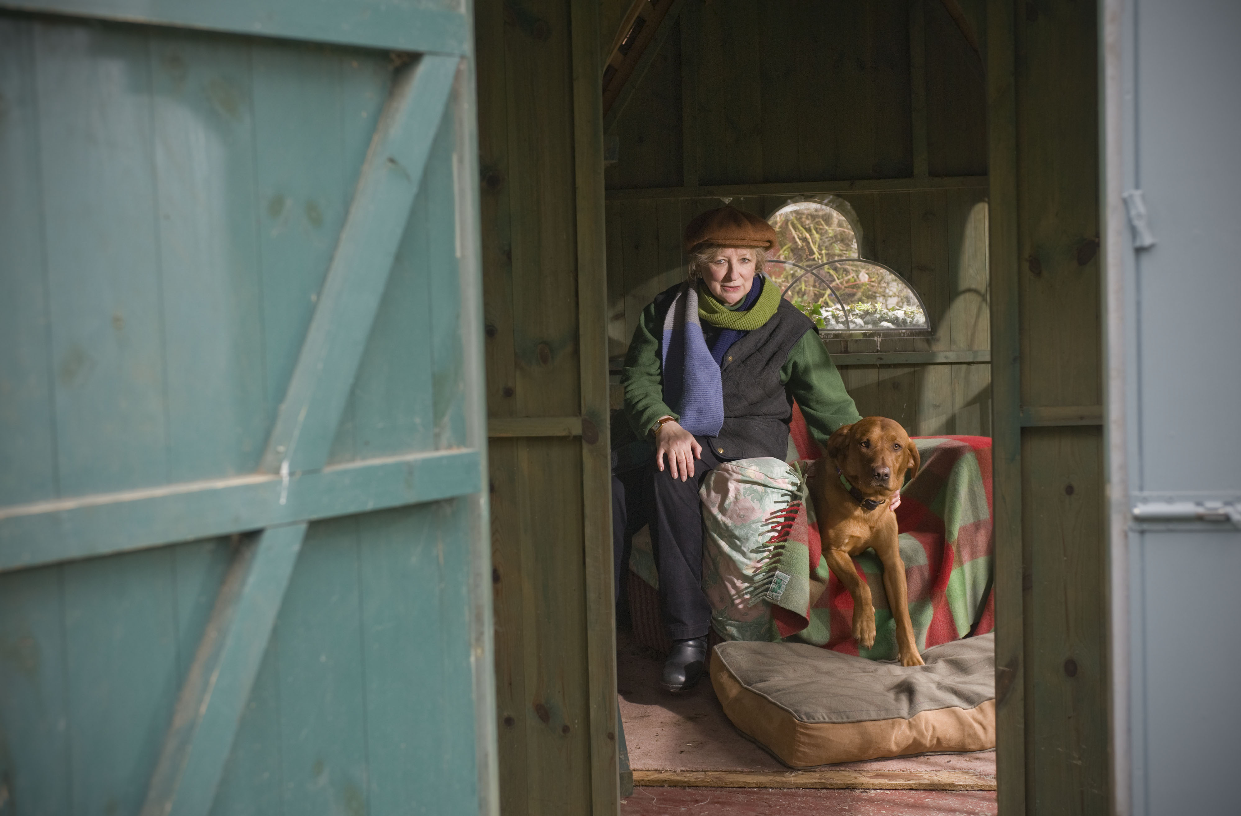 Lady Carla Carlisle at home with her labrador Otis in Suffolk.