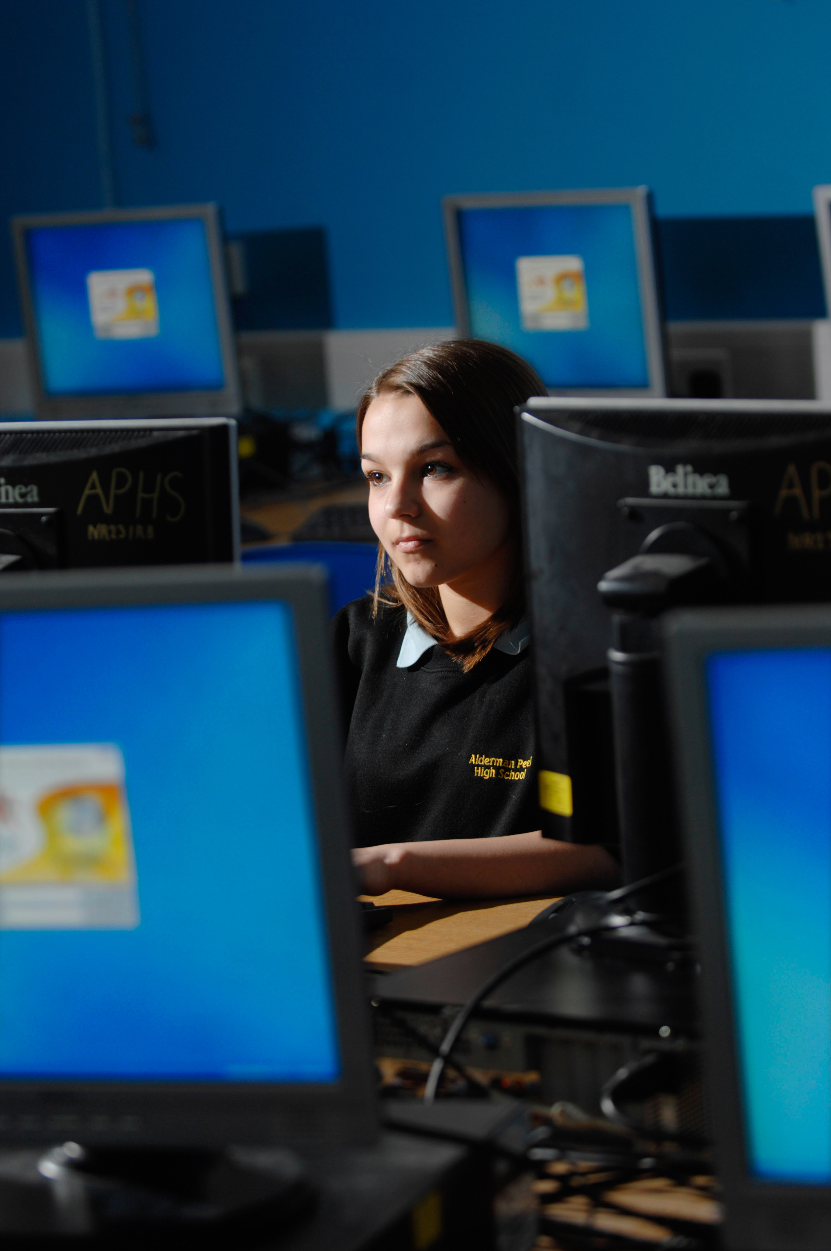 ?Si Barber/07739 472 922 School children in a UK comprehensive using computers.