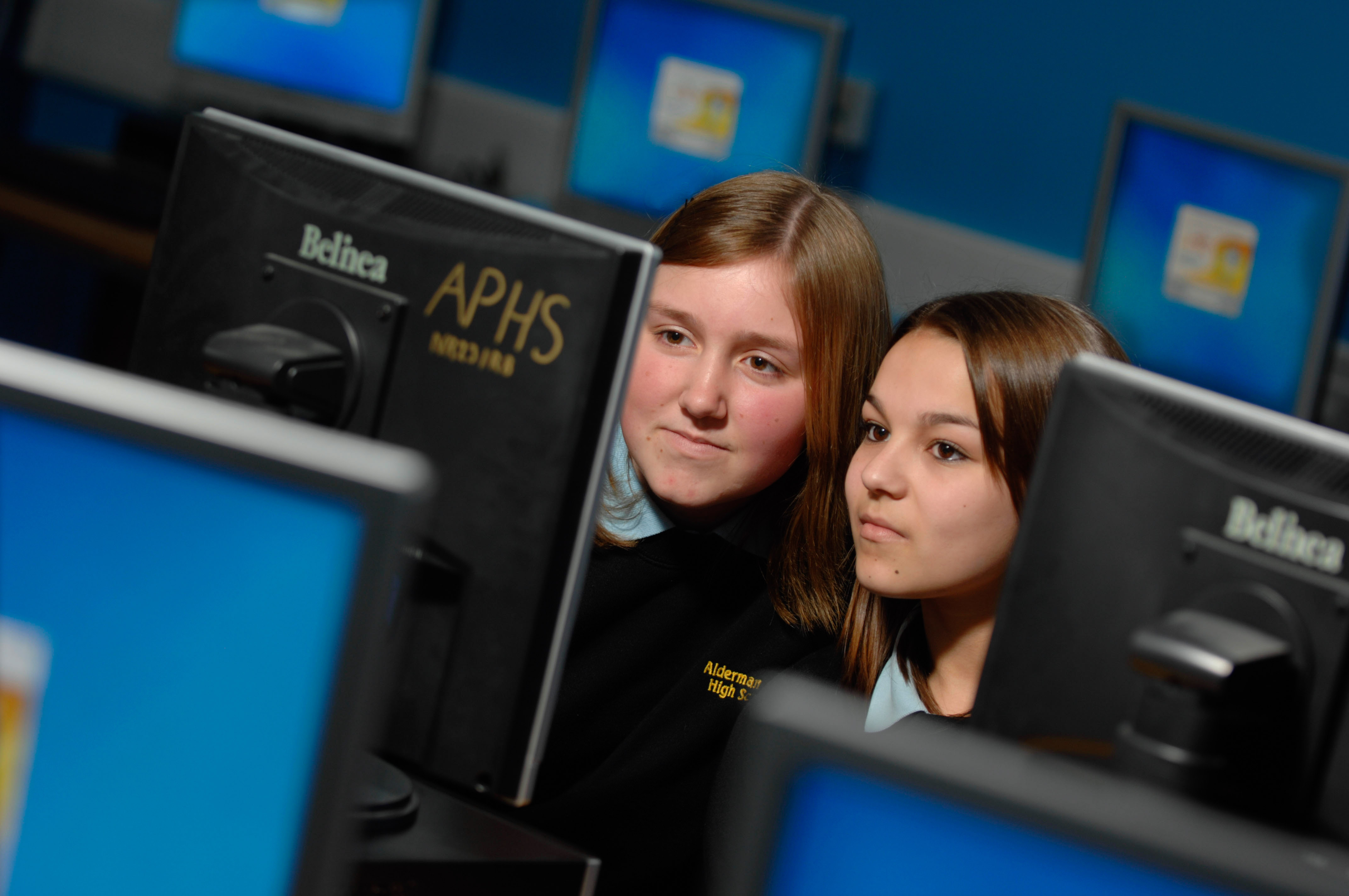?Si Barber/07739 472 922 School children in a UK comprehensive using computers.