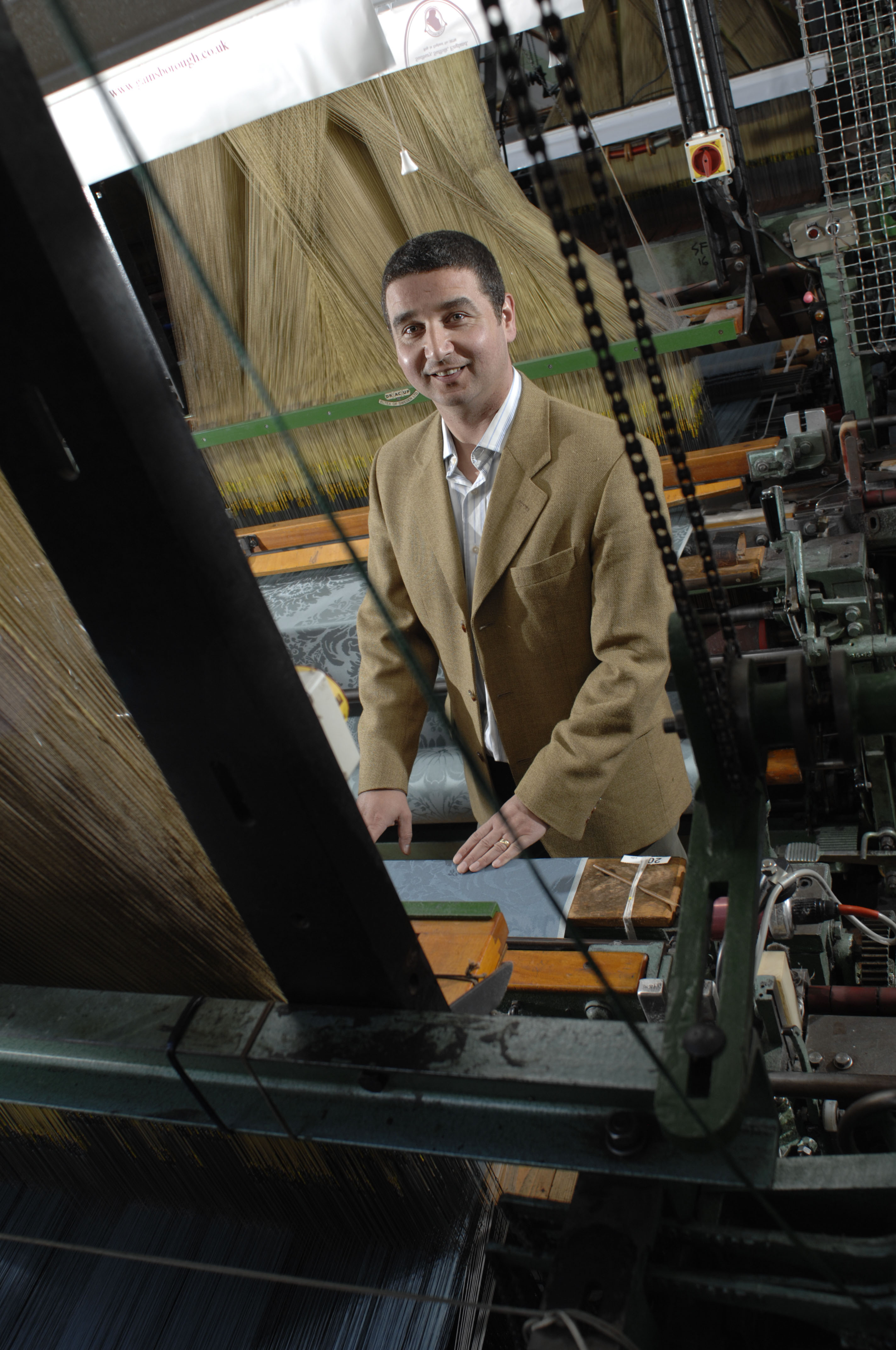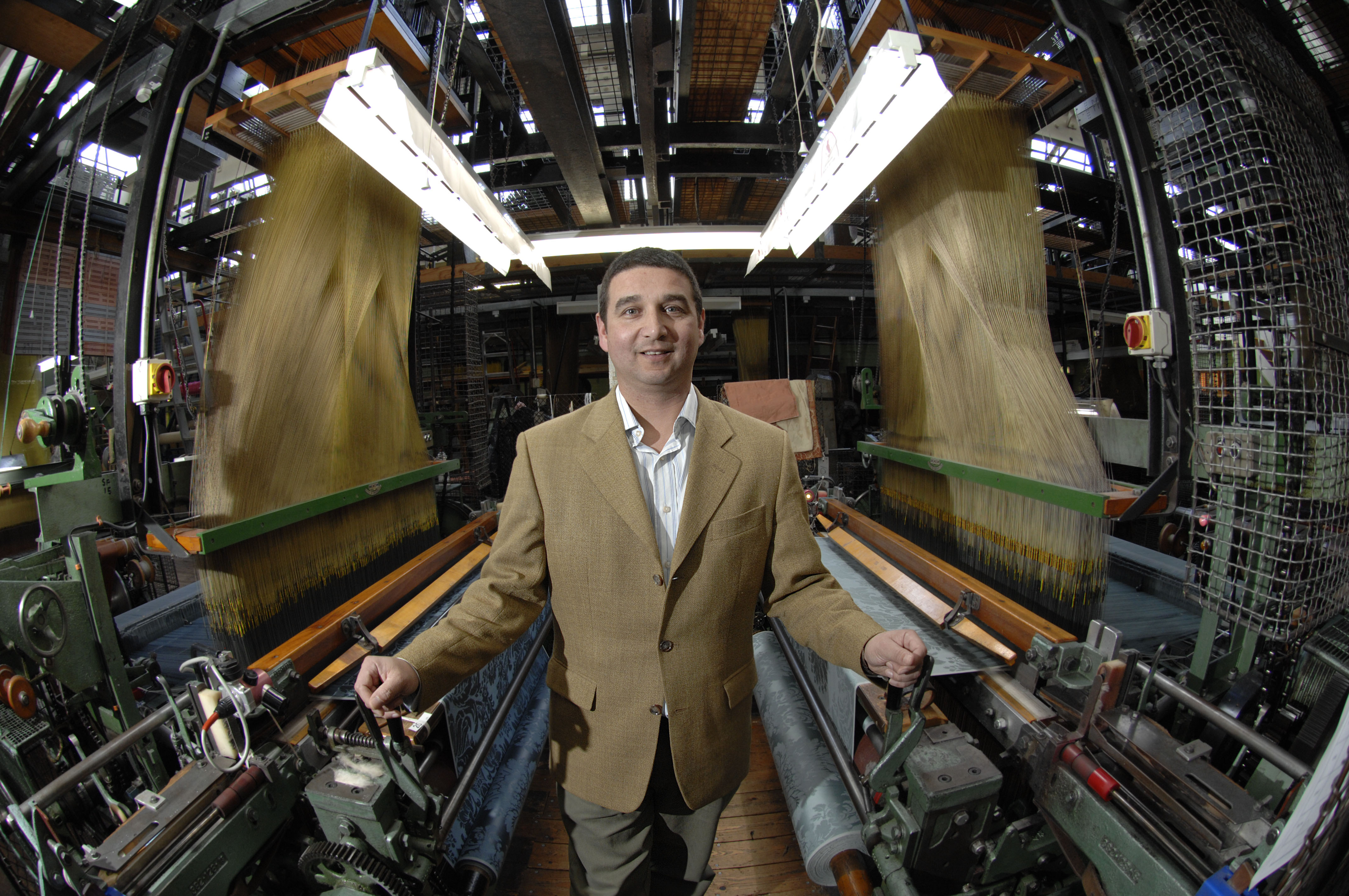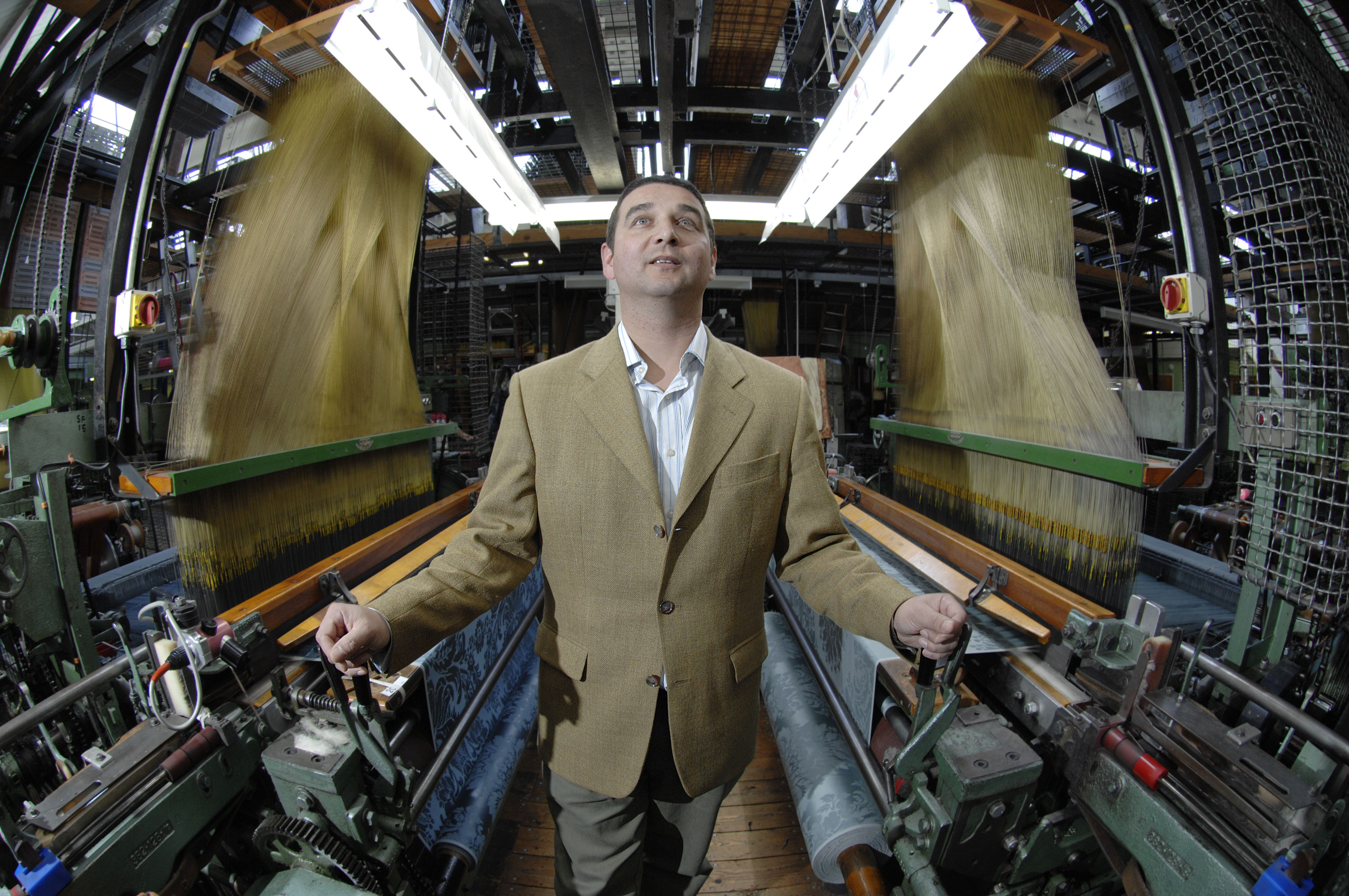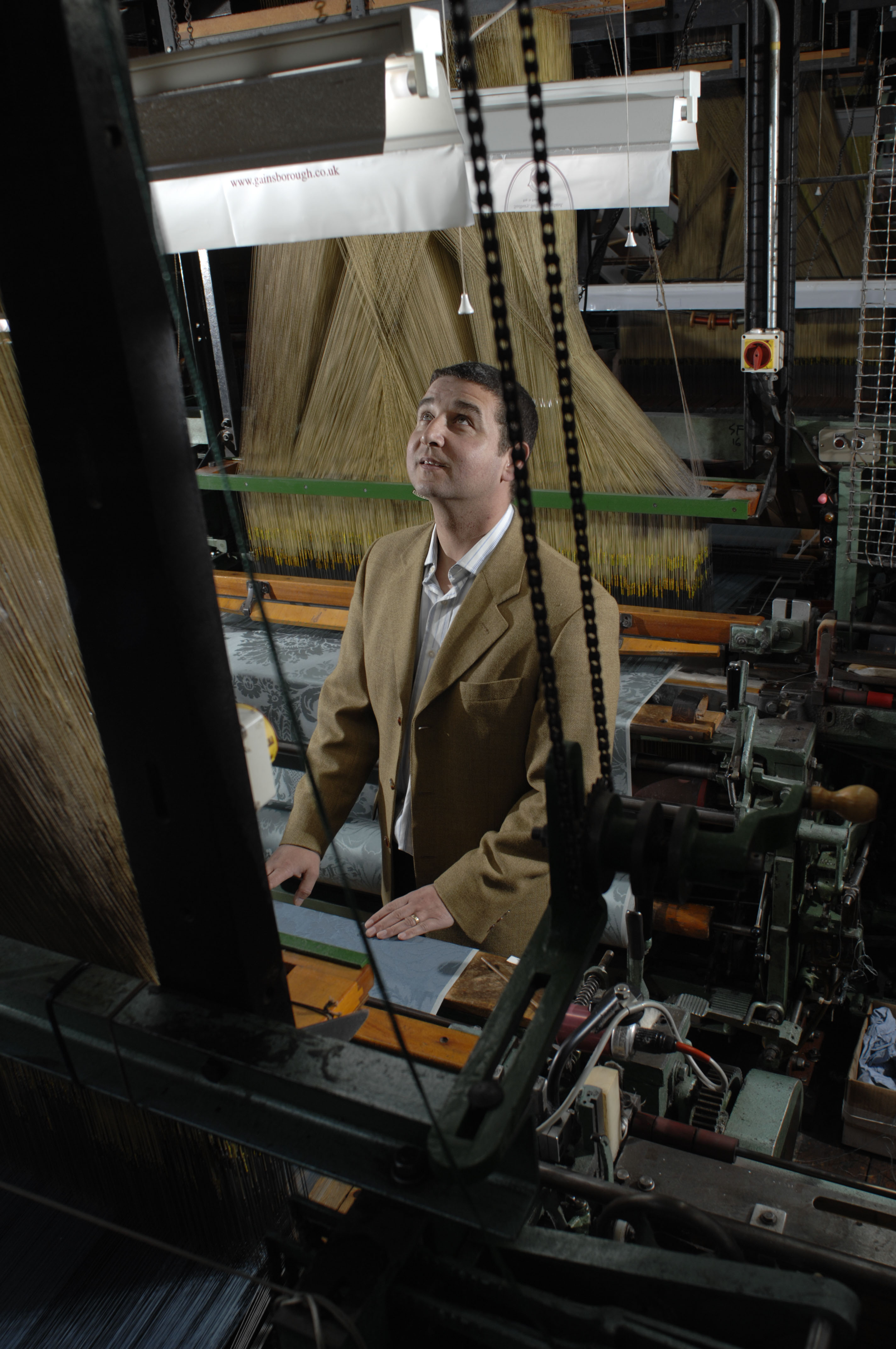 Pic by Si Barber - 07739 472 922 Neil Thomas of Gainsborough Silk Weavers in the weaving room of his factory at Sudbury, Suffolk. Ordered by Katie Litchfield. 220307.