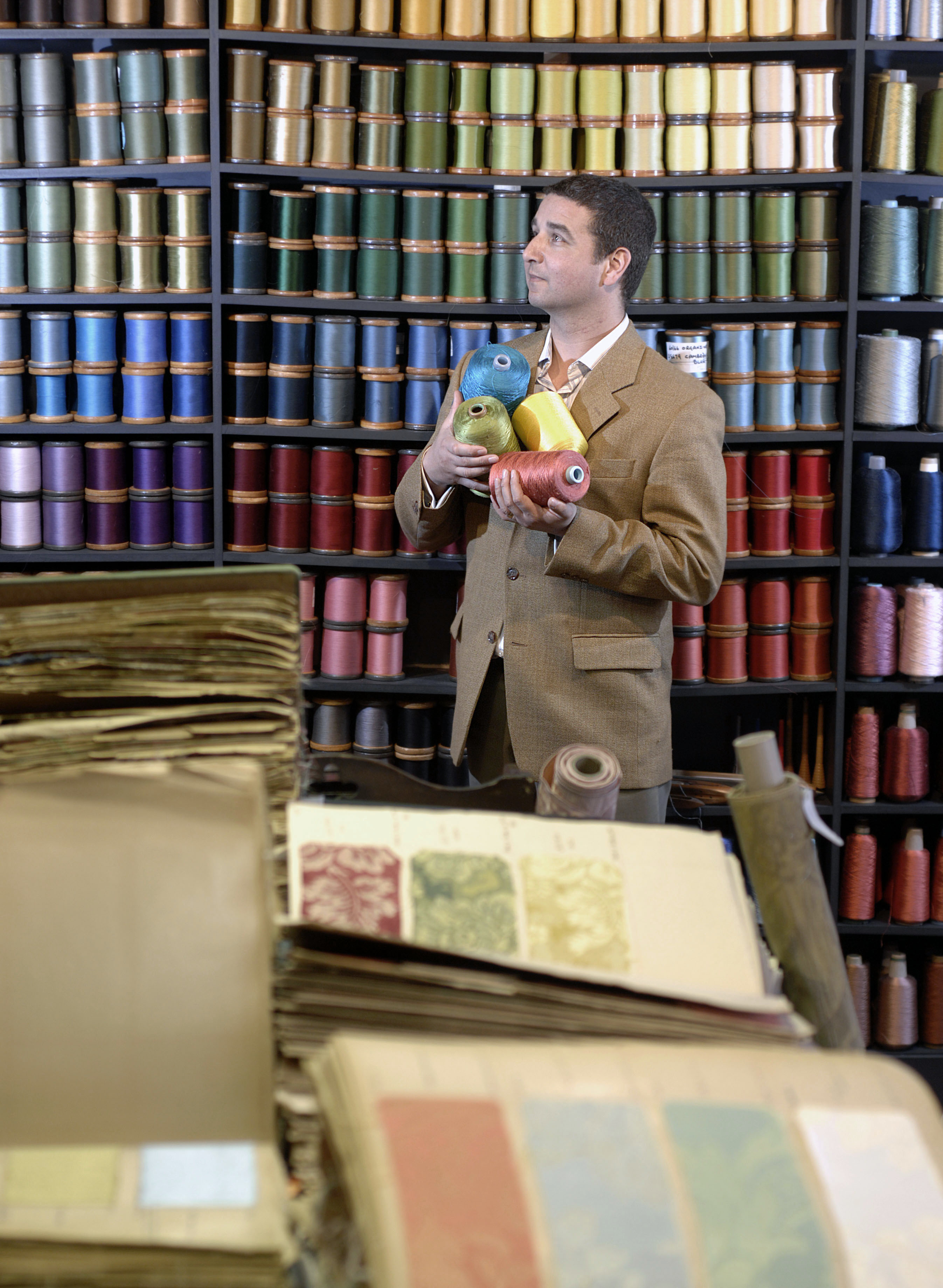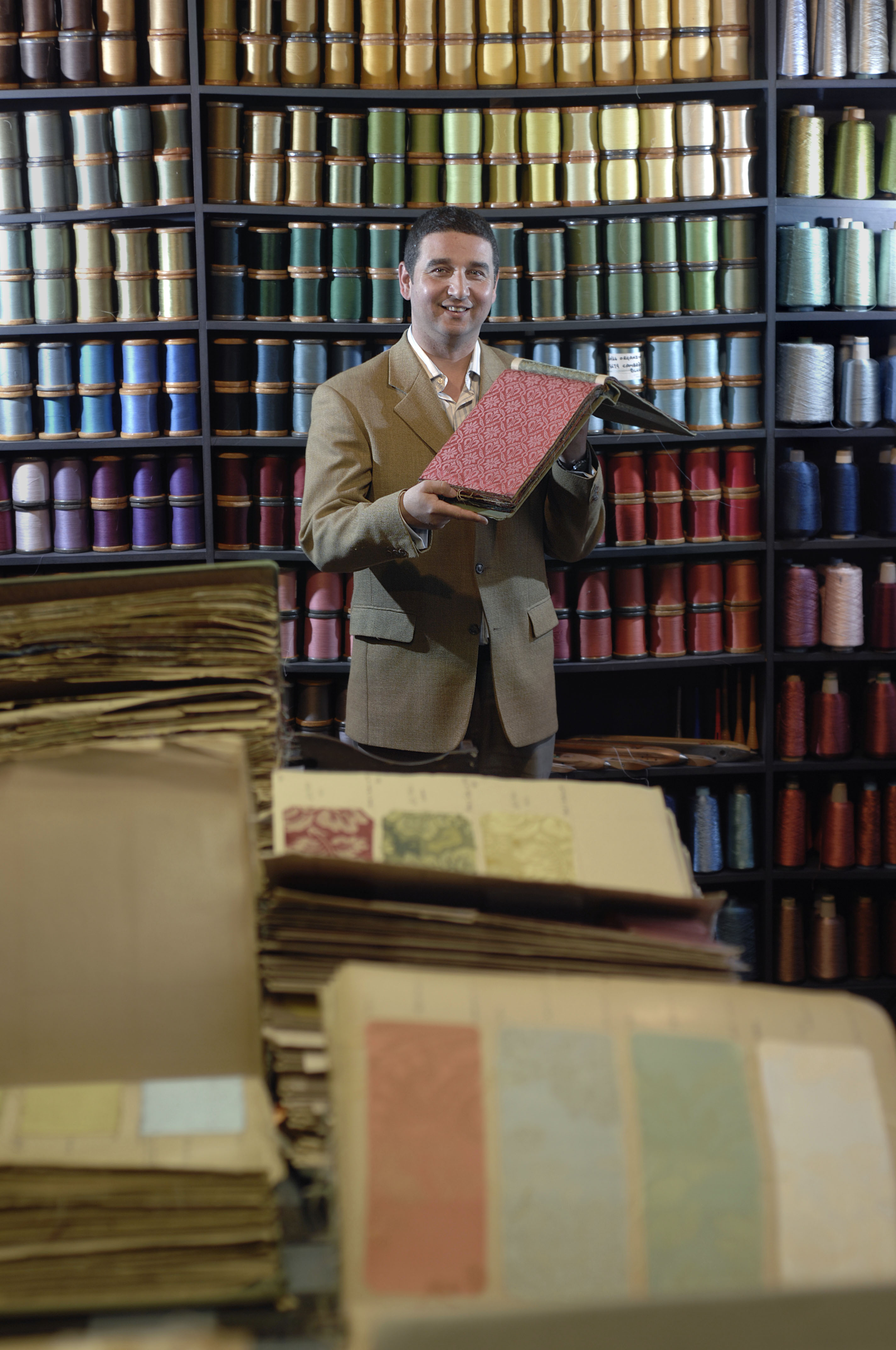 Pic by Si Barber - 07739 472 922 Neil Thomas of Gainsborough Silk Weavers in the samples room of his factory at Sudbury, Suffolk. Ordered by Katie Litchfield. 220307