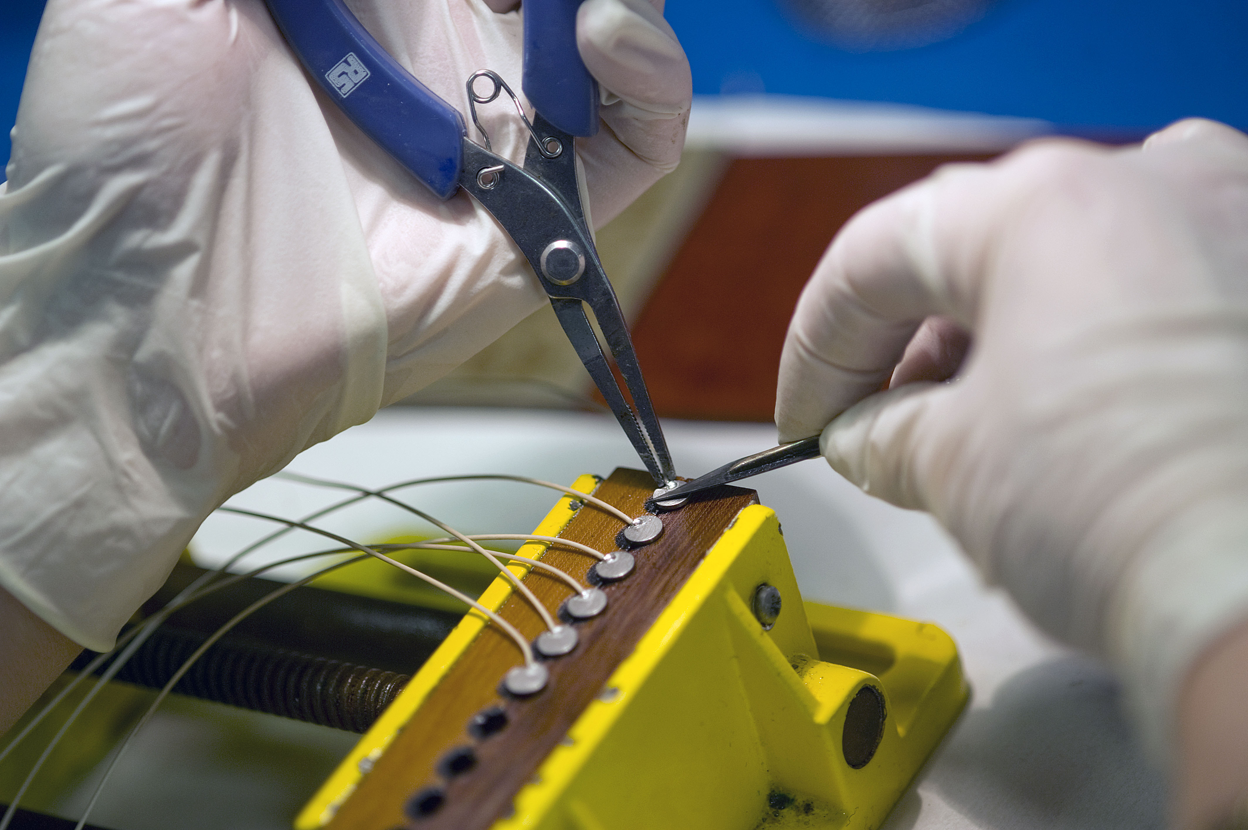 ? Si Barber 07739 472 922.Ordered by Marcus Cotton..Domino Printing factory floor. Images shows: Assembling and testing the drive rods for the printer heads...