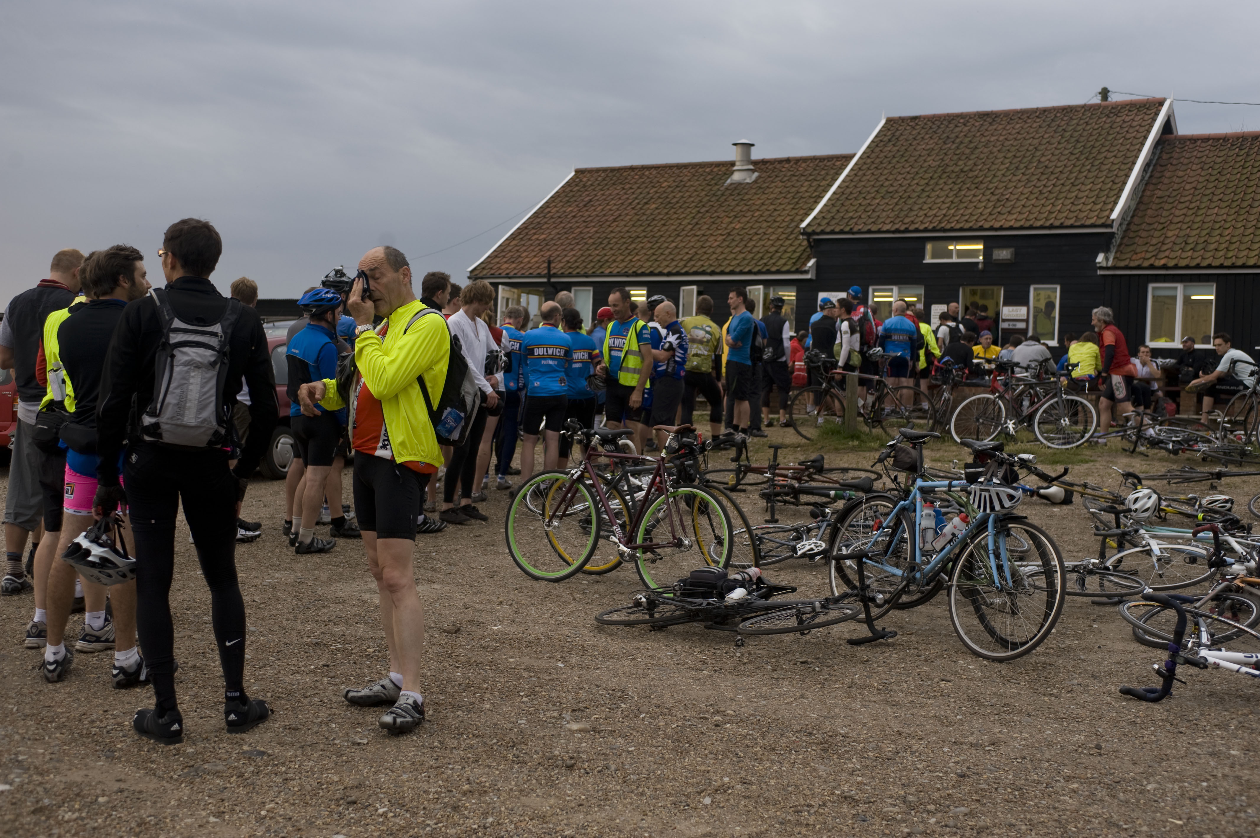 Si Barber 07739 472 922 Ordered by Leila Rawlins The Dunwich Dynamo cycle race in which competitors ride 120 mile route from London Fields to Dunwich in Suffolk overnight. Picture shows competitors queing for food at Dunwich beach after completing the race