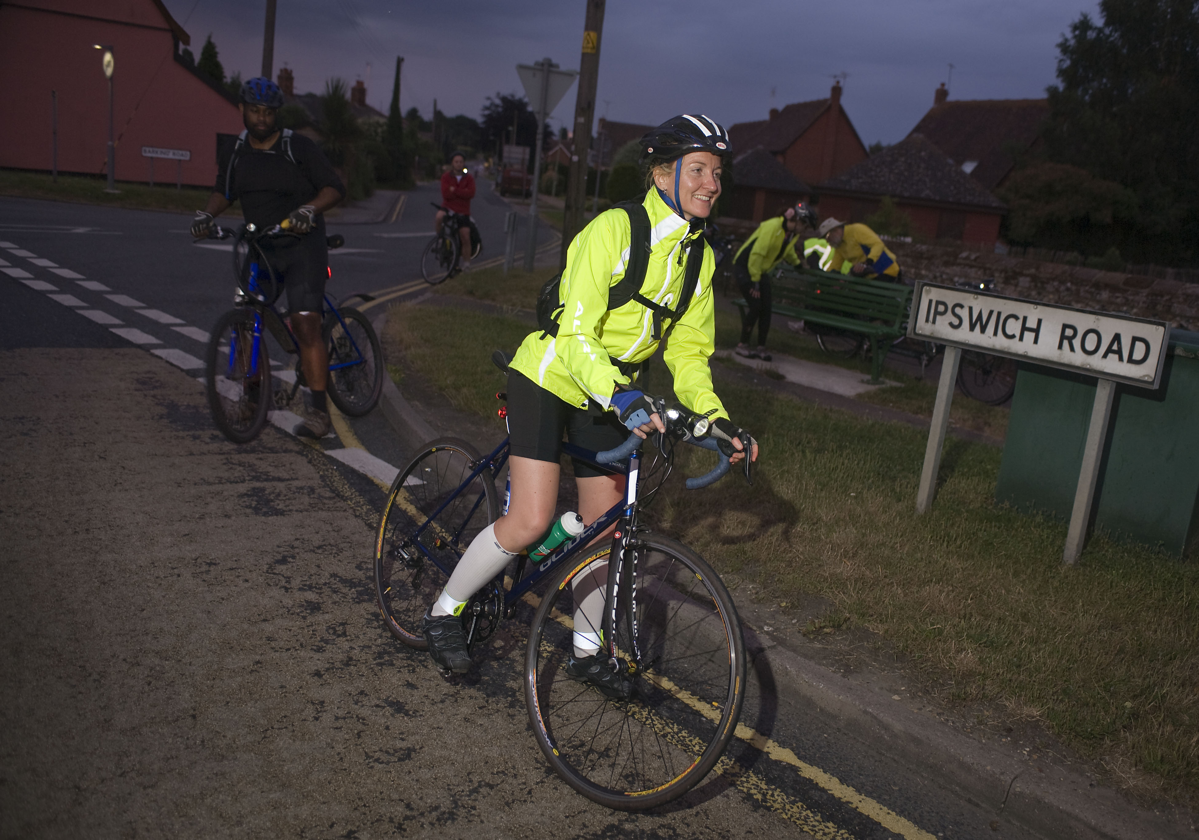 Si Barber 07739 472 922 Ordered by Leila Rawlins The Dunwich Dynamo cycle race in which competitors ride 120 mile route from London Fields to Dunwich in Suffolk overnight. Picture shows Sam Murphy preparing to leave Great Walding to complete the second stage of the race.