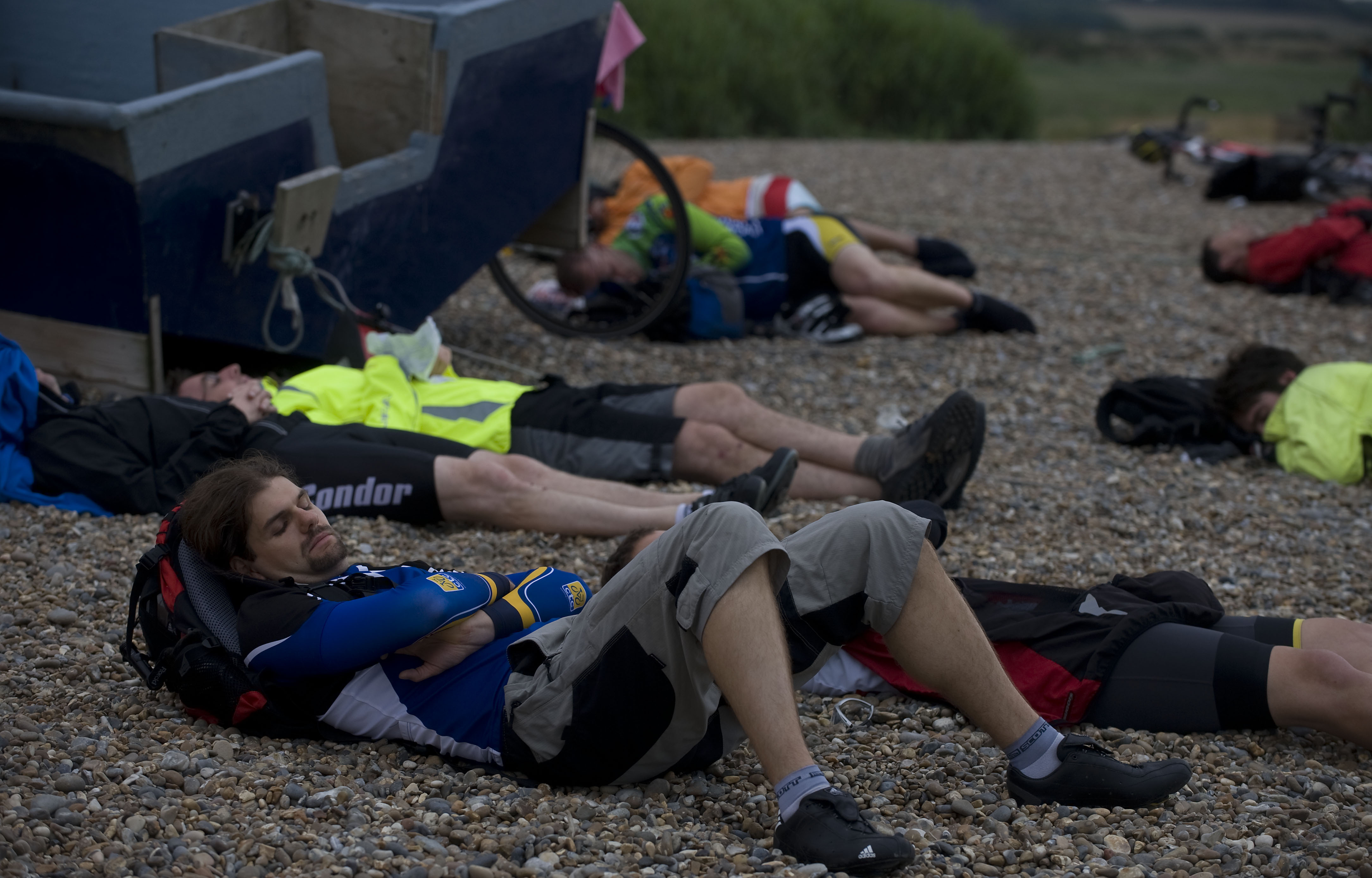 Si Barber 07739 472 922 Ordered by Leila Rawlins The Dunwich Dynamo cycle race in which competitors ride 120 mile route from London Fields to Dunwich in Suffolk overnight. Picture shows competitors sleeping on Dunwich beach after completing the race.