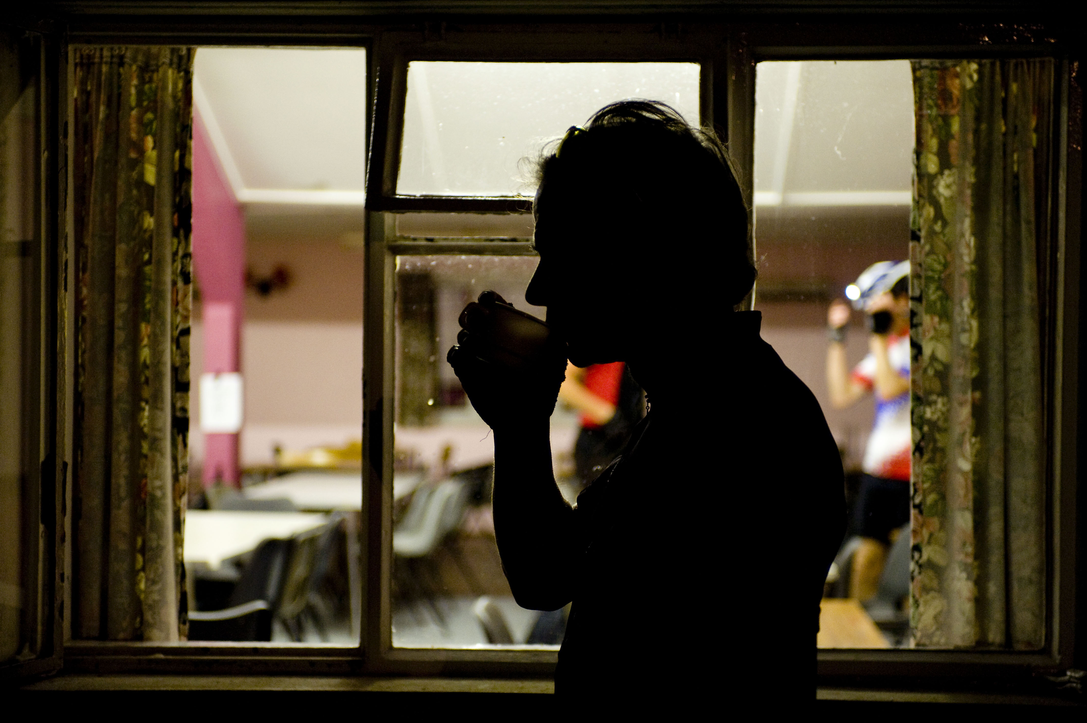 Si Barber 07739 472 922 Ordered by Leila Rawlins The Dunwich Dynamo cycle race in which competitors ride 120 mile route from London Fields to Dunwich in Suffolk overnight. Picture shows an exhausted cyclist outside the feeding station.